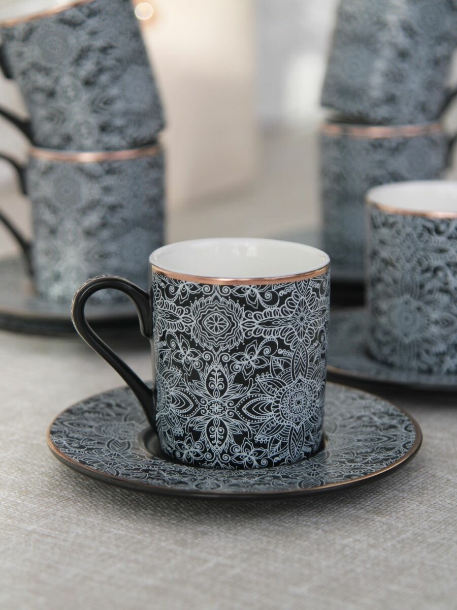 Кофейный сервиз на 6 персон от Balsford - это элегантный и стильный набор, который идеально подойдет для посещения гостей или для ежедневного использования. Набор включает в себя 6 кофейных чашек объемом 100 мл и 6 блюдец, изготовленных из высококачественного фарфора. Кофейные наборы на 6 персон являются отличным выбором для благоустройства вашего дома и создания уютной атмосферы во время кофейной паузы. Сервизы и наборы фарфор являются прекрасными вариантами для тех, кто ценит изысканный дизайн и качество материалов. Кофейный сервиз Balsford изготовлен из фарфора - это материал, который отличается красивым блеском, неприхотливостью в уходе и устойчивостью к повреждениям. Кофейные чашки набор от Balsford дополнены элегантными блюдцами, которые помогут сделать ваш кофе-брейк еще более комфортным и уютным. Набор кофейных чашек Balsford является идеальным подарком для любителей эстетики и функциональности. Кофейный набор чашек на 6 персон может стать не только отличным приобретением для вашей кухни, но и прекрасным подарком на день рождения, юбилей или свадьбу. Кофейные чашки набор от Balsford объединяют в себе красивый дизайн и высокое качество. Фарфоровый сервиз будет украшением вашего дома и позволит вам наслаждаться кофе или другими напитками в прекрасной обстановке. Чашки для кофе из набора Balsford выполнены в стильном дизайне, который подчеркнет вашу индивидуальность и добавит шарма обеденному столу.