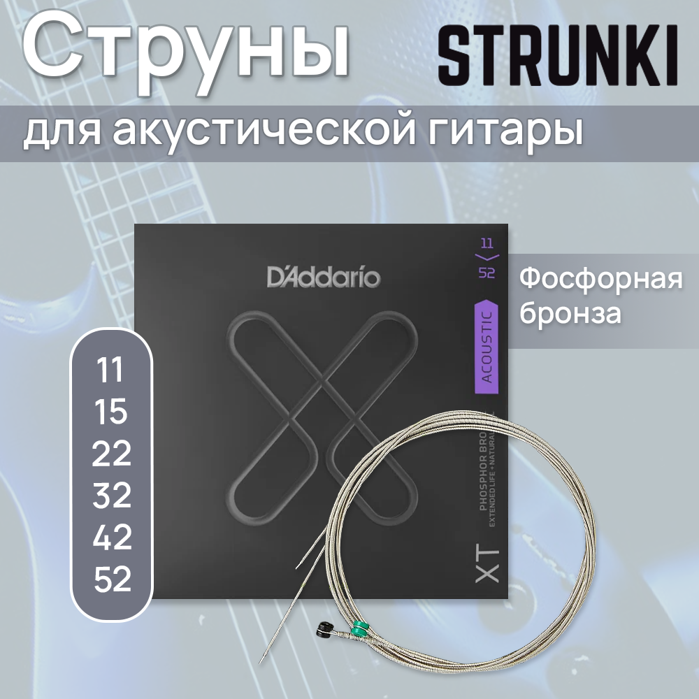 XT Комплект струн для акустической гитары, фосф.бронза, 11-52, с покрытием, D'Addario