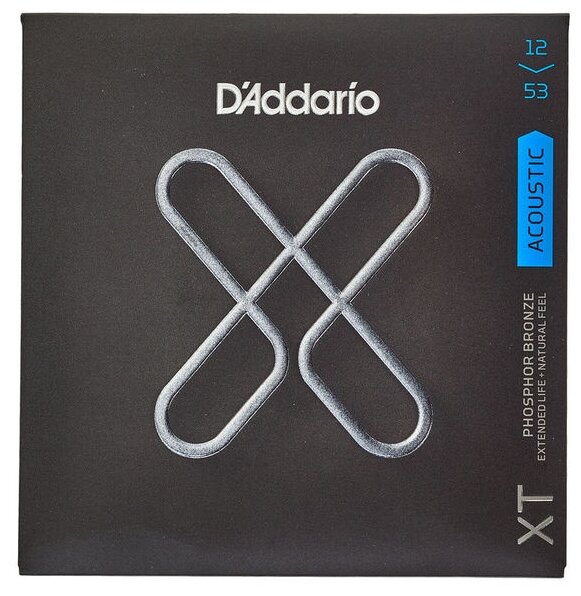 XT Комплект струн для акустической гитары, фосф.бронза, 12-53, с покрытием, D'Addario