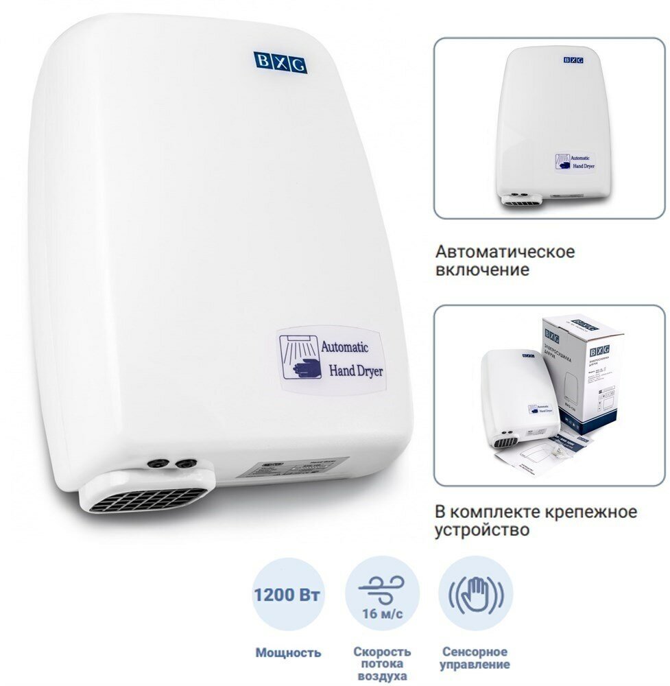 Сушилка для рук BXG-120С будет удобной во всем — начиная с установки и до применения. Устройство BXG-120С можно установить самостоятельно. Это автоматическая модель, благодаря чему не придется искать кнопку для включения и нажимать ее.
