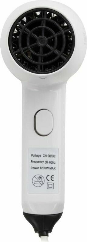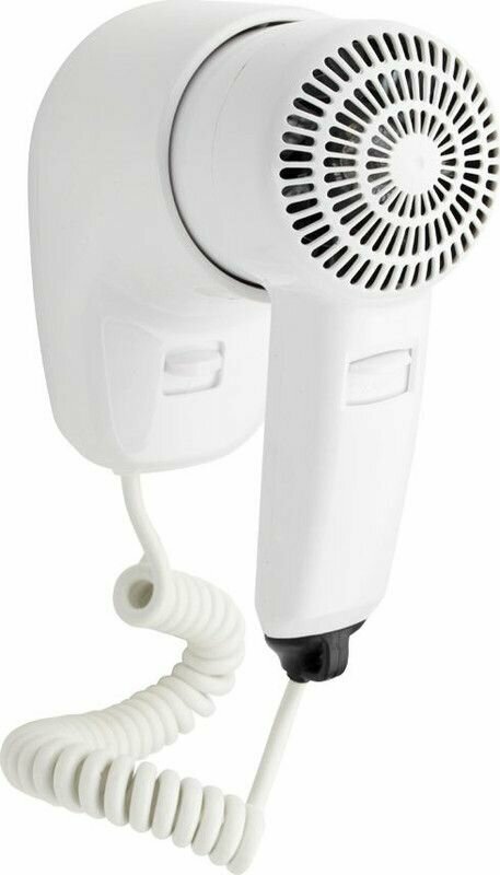 Фен для волос в ванную комнату с торцевым креплением, предназначен для сушки волос потоком теплого воздуха. Идеально подходит для установки в гостиницах, бассейнах, фитнес-клубах, в раздевалках складских и производственных комплексов. Так же может использоваться в личных ванных комнатах. Электрический фен позволяет комфортно и быстро высушить волосы после душа. Настенный держатель дает возможность хранить электроприбор в ванной комнате. Материал корпуса выполнен из белого высокопрочного пластика АБС, устойчивого к механическим повреждениям, перепадам температуры и коррозии. Поэтому электроприбор подходит не только для домашнего, но и для общественного использования – бассейны, сауны, душевые в спортивных залах. Благодаря небольшому весу феном удобно пользоваться. Параметры: 1200 W, 220В, 2 скорости. Скорость потока 17 м/с. Габаритные размеры: высота 210 мм, высота блока 145 мм, глубина 150, ширина 85 мм, длина шнура розетки 800 мм, длина пружинного шнура 380 - 600 мм. Вес - 0,800 кг.