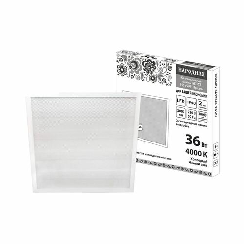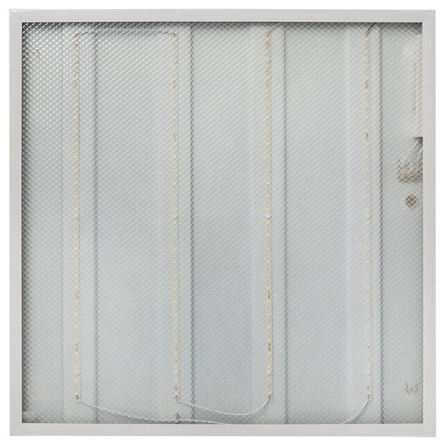 Долго выбирал цветовую температуру для админ. помещения, остановился на 4000К. Стоит учесть, что этот показатель все-равно относителен, и как правило, отличается у каждого производителя. С другой стороны, когда панели начинают выходить из строя, - даже этого же производителя ставишь новую - и есть некоторое отличие по тону, т.е. имеет место и некоторое изменение цветового тона в процессе эксплуатации. Текстура рассеивателя (пластиковое полотно) у этой панели - такое часто называют "призма", светит оно ярче, чем так называемый "опал". В остальном - панель ничем не отличается от других такого типа - плоское металлическое квадратное "корытце" глубиной 2см., драйвер внутри, выход 3 провода (2 на 220 + заземление). Размер - стандарт для подвесного потолка типа Армстронг. Панель разбирается откручиванием 4 болтиков в торцах. Если не нашли нужную панель на замену перегоревшей - можно покупать любую с такой же температурой света, а рассеиватель легко перекинуть от старой.