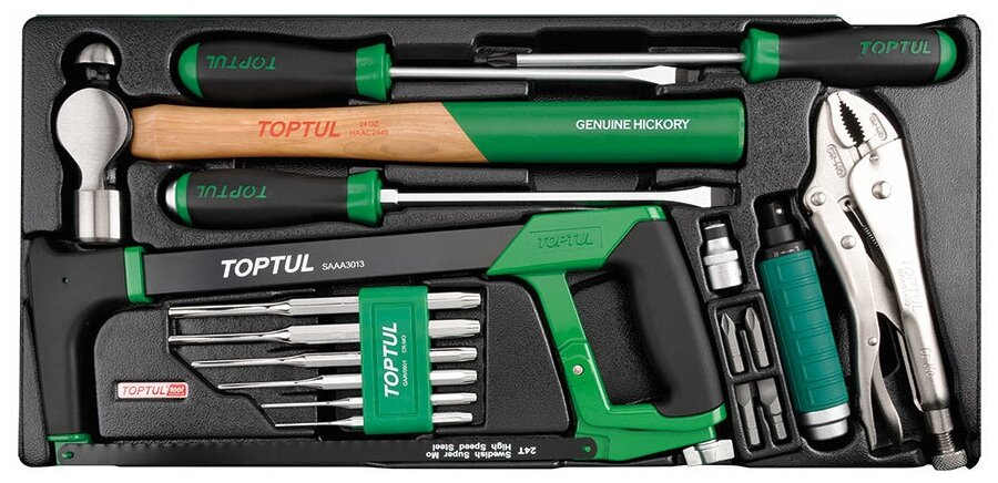 | Комплектация | биты; переходники; губцевый инструмен; отвертки; молоток; ножовка; клещи зажимные |