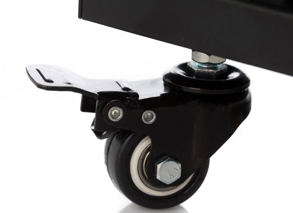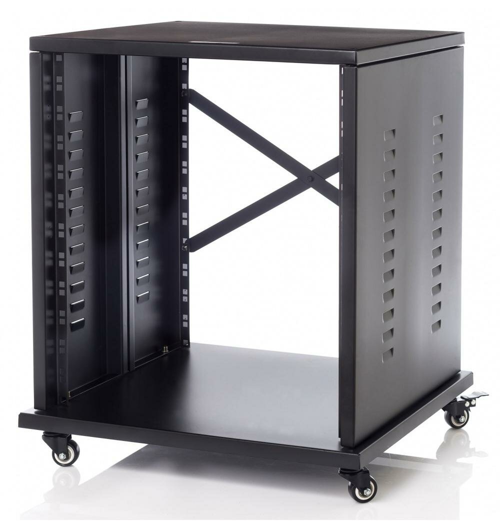 Рэковый шкаф высотой 12U на прочных колесиках для размещения студийного оборудования. Максимально допустимый вес устройств – до 70 кг.