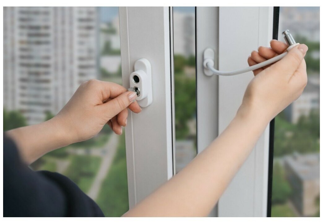 - Замок на окна пластиковые. Тросовый замок на окна Penkid от выпадения детей
