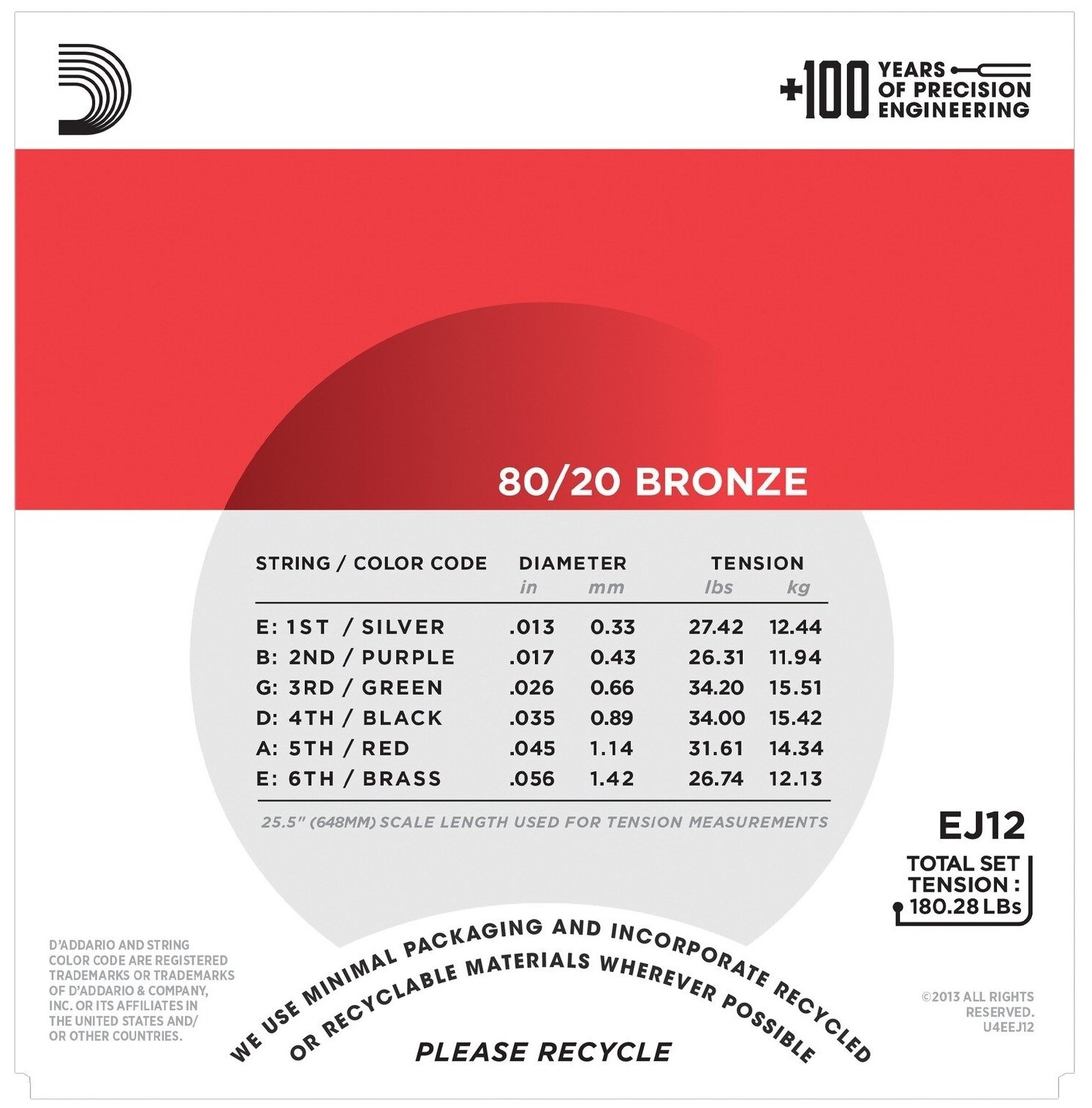 Компания D'Addario была первой, которая предложила использовать сплав 80/20 Bronze для акустических гитар. Сплав бронзы 80/20 дает очень четкий звук с глубоким низом и объемом. Эти струны идельно подходят для записи в студии.