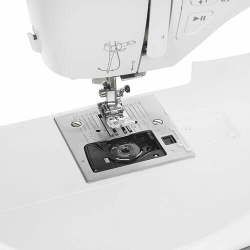 | Дополнительные функции | ручной обрезатель нити, переключатель положения иглы (верх/низ), отключение механизма подачи ткани, нитевдеватель, кнопка стоп/старт, верхний транспортер ткани |