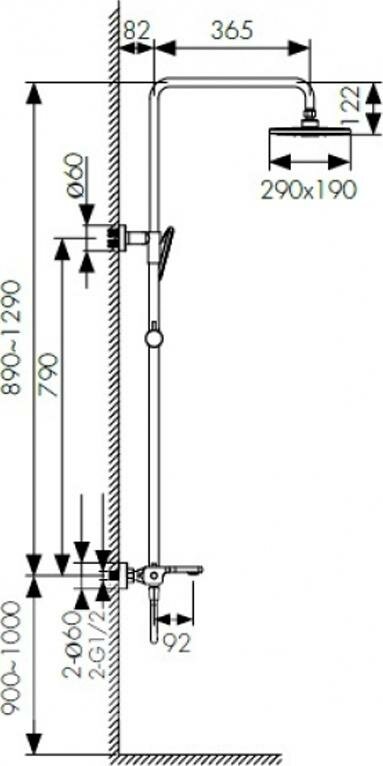 | Форма верхнего душа | прямоугольник |