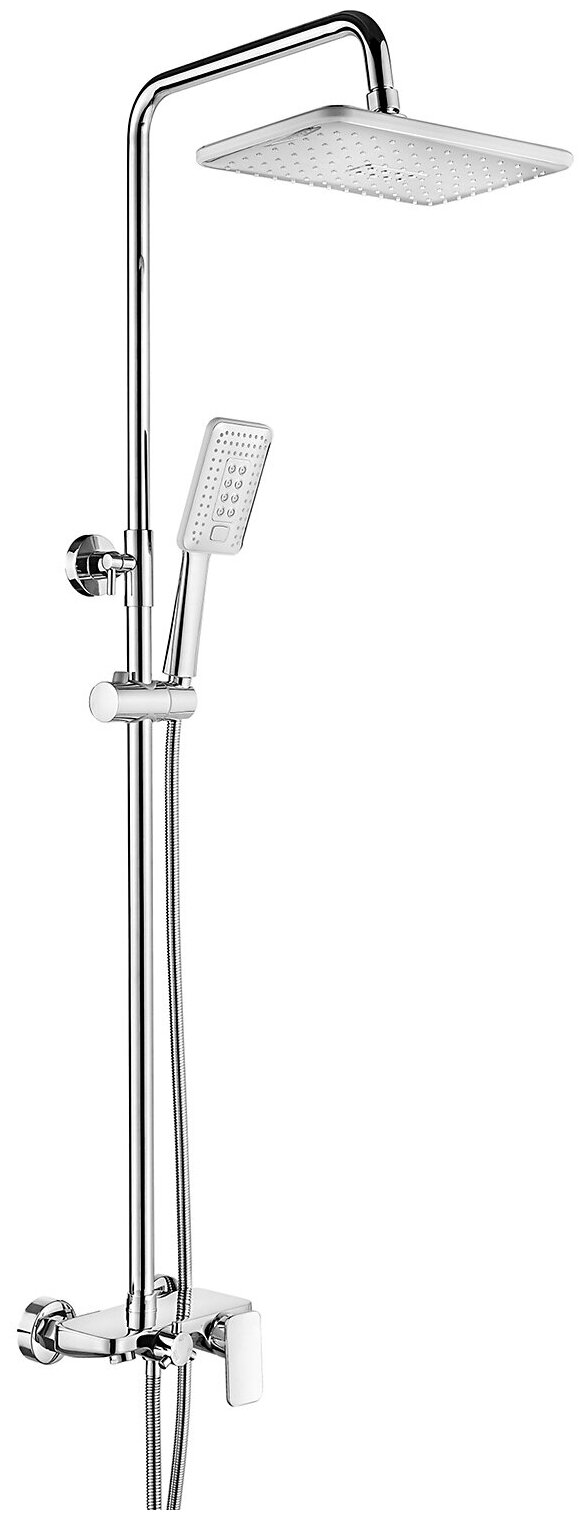 | Комплект поставки | смеситель, душевая стойка, душевая лейка, душевой шланг, держятель для лейки, верхний душ, крепежый комплект |