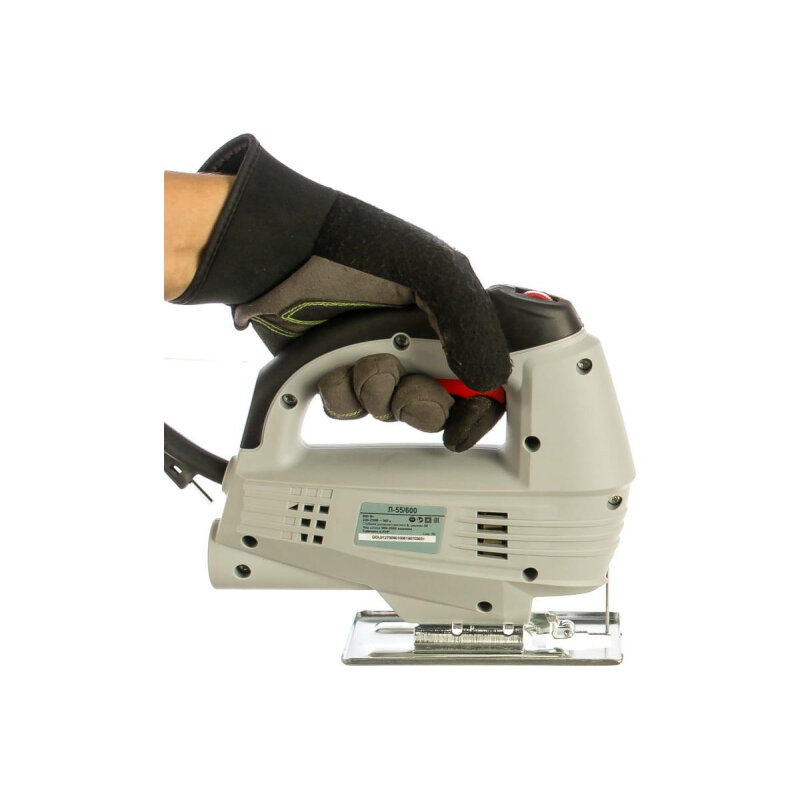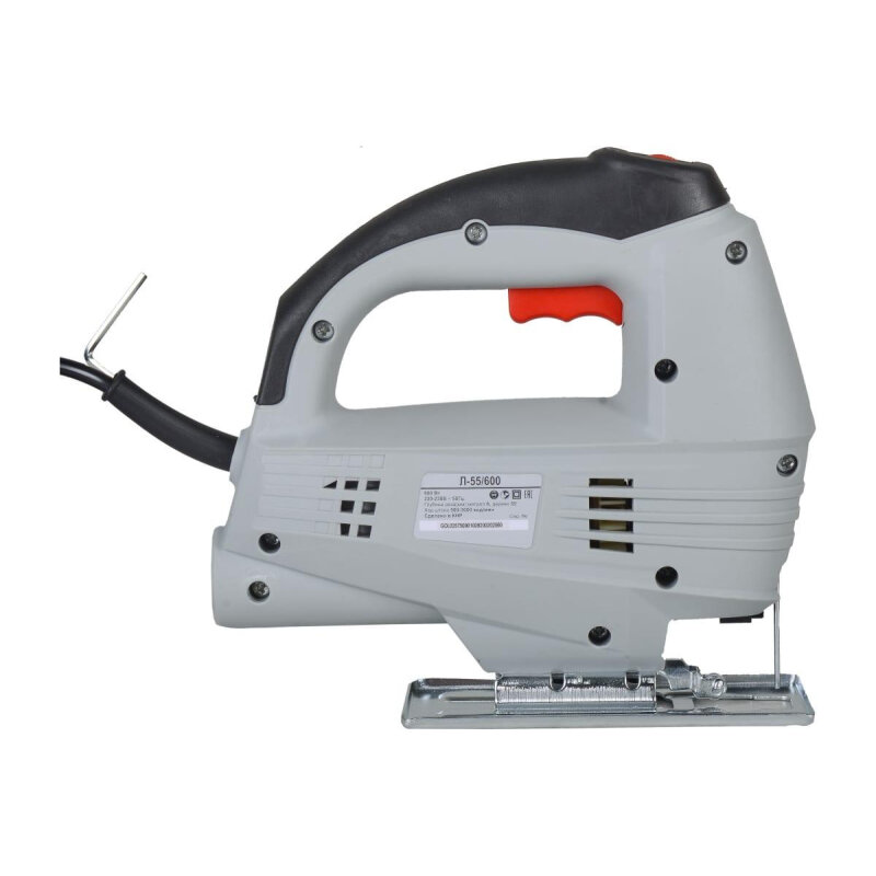 Электрический лобзик Л-55/600 имеет плавную регулировку скорости для распила различных материалов c высокой точностью и «чистым резом». Также есть регулировка угла наклона подошвы ±45° и кнопка фиксации выключателя для продолжительного пиления.