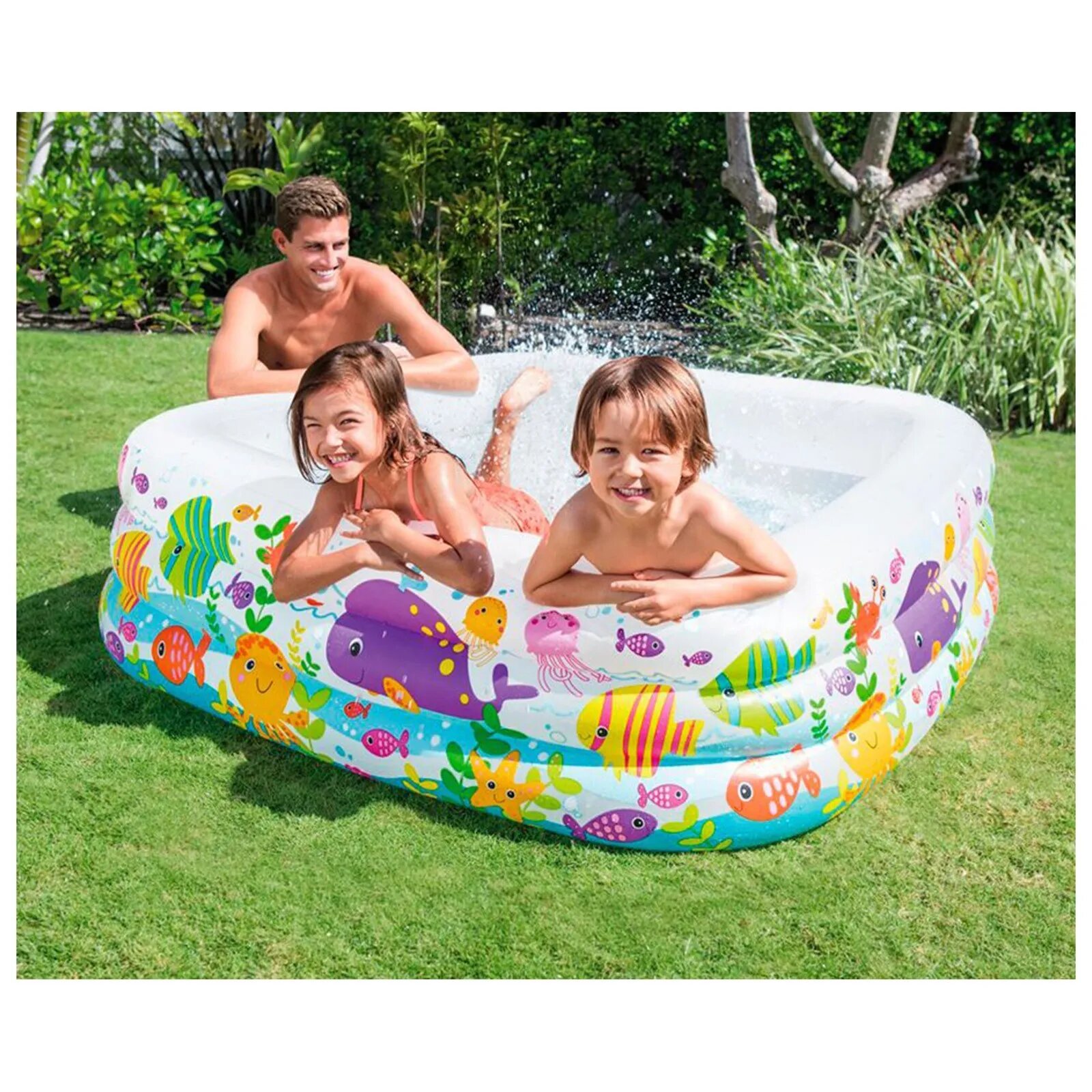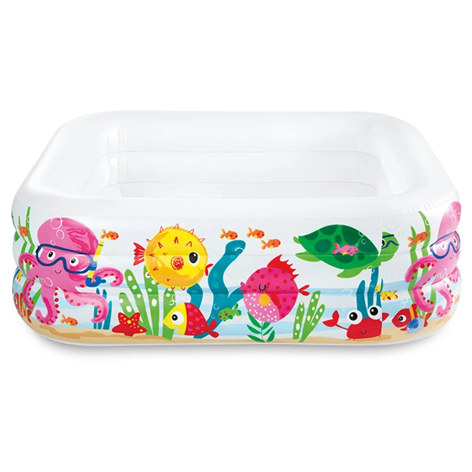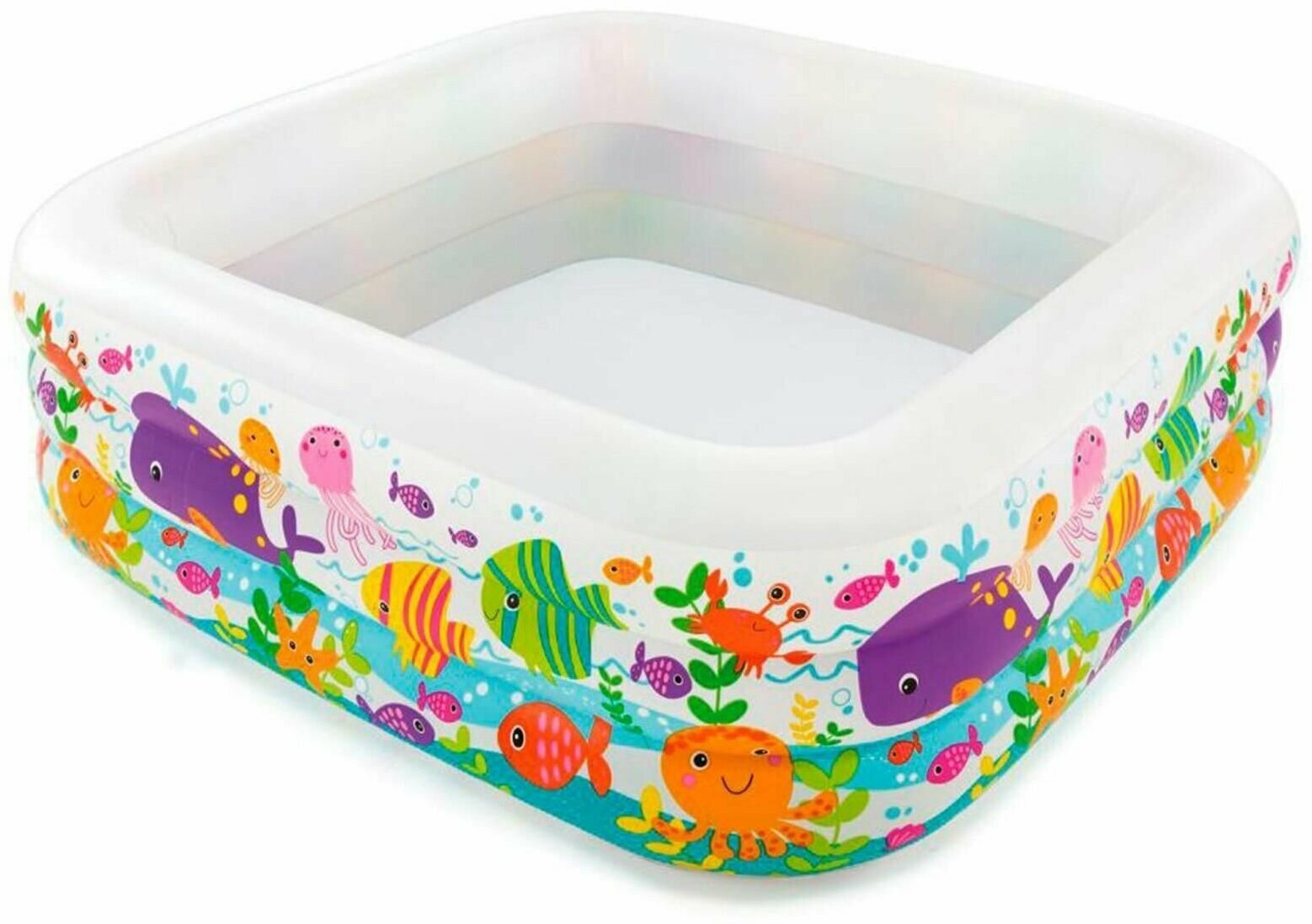 Отличный бассейн для детей Intex 57471NP имеет приятный внешний вид. Стенки бассейна украшенны изображения океанских глубин и подводных обитателей. Такое оформление сразу привлечет внимание вашего ребенка. Купание в этом бассейне будет приятным и радостным и, что немаловажно, комфортным.