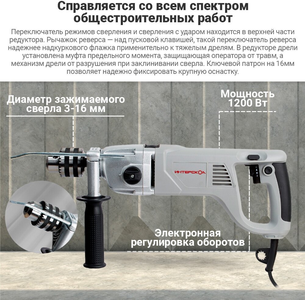 - Дрель интерскол ДУ-22/1200 ЭРП