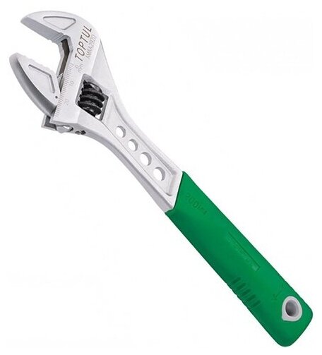 Ключ разводной TOPTUL предназначен для работы с резьбовыми соединениями широкого диапазона. Изготовлен из высококачественной инструментальной легированной стали. На рабочую поверхность ключа нанесена миллиметровая шкала для удобства использования и настройки инструмента. Облегченная конструкция ключа и обрезиненная ручка увеличивают удобство использования инструмента.