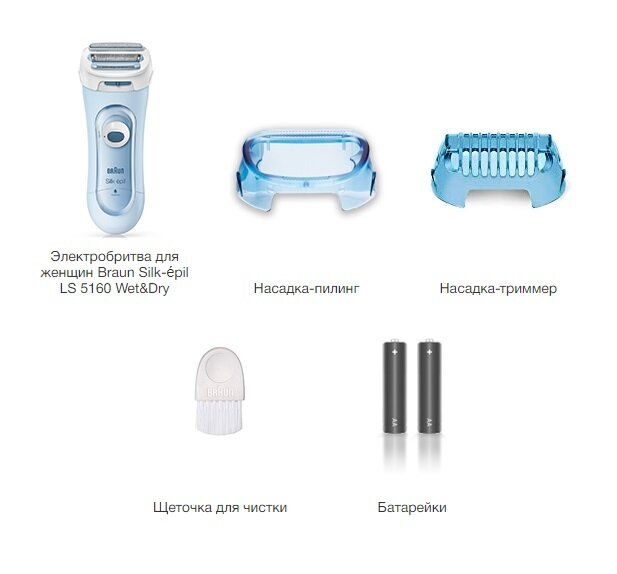 Электробритва для женщин Braun Silk-épil LS 5160 Wet&Dry 3-в-1 — это бритва 3-в-1 для ног, подмышек и зоны бикини с триммером и системой пилинга. Полностью водонепроницаемая электробритва с технологией Wet&Dry для комфортного использования в ванной или душе. Насадка для пилинга мягко отшелушивает кожу во время бритья, придавая коже еще большую гладкость. Закругленная форма бритвенной головки подстраивается под контуры тела и упрощает использование. Насадка-триммер мягко удаляет волосы на чувствительных участках, таких как зона бикини. Включает 2 дополнительных аксессуара: насадку для пилинга и насадку-триммер.