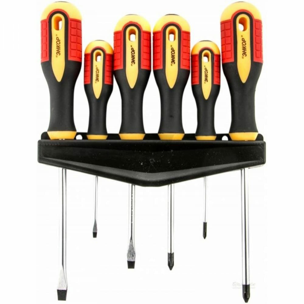 Набор отверток Энкор с трехкомпонентной рукояткой предназначен для обслуживания резьбовых соединений. Магнитный наконечник легко удерживает крепеж и придает удобство при работе в труднодоступных местах. Трехкомпонентная рукоятка имеет эргономичную форму, что обеспечивает надежный захват и предотвращает выскальзывание из руки.