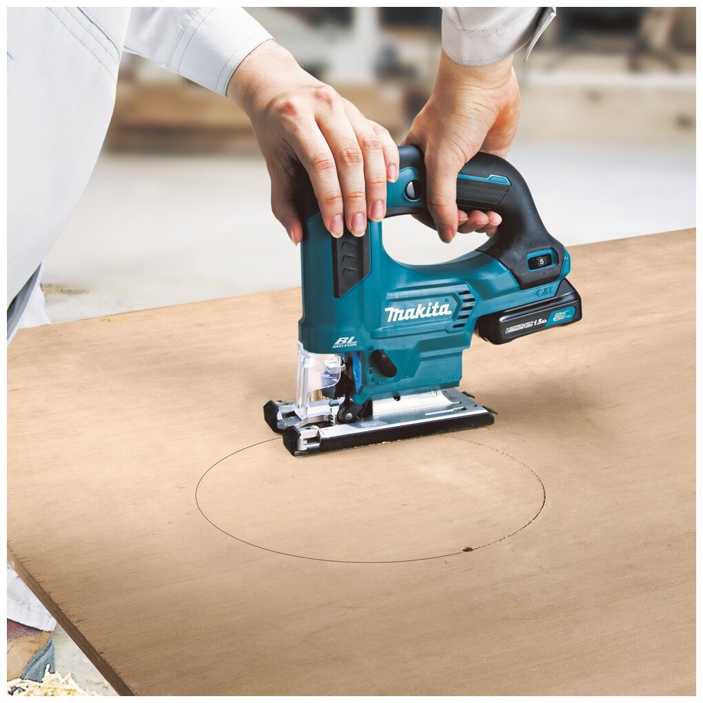 Makita - мощный бесщёточный лобзик для работ по прямому и фигурному распилу заготовок. Инструмент не обременен проводами, имеет небольшие габариты и вес, благодаря чему чрезвычайно мобилен. Настоящая комплектация не предполагает наличия батарей и зарядного устройства. Для работы подойдет аккумуляторный блок серии CXT Li-Ion 10.8 В емкостью 1.5/2.0/4.0 Ач.