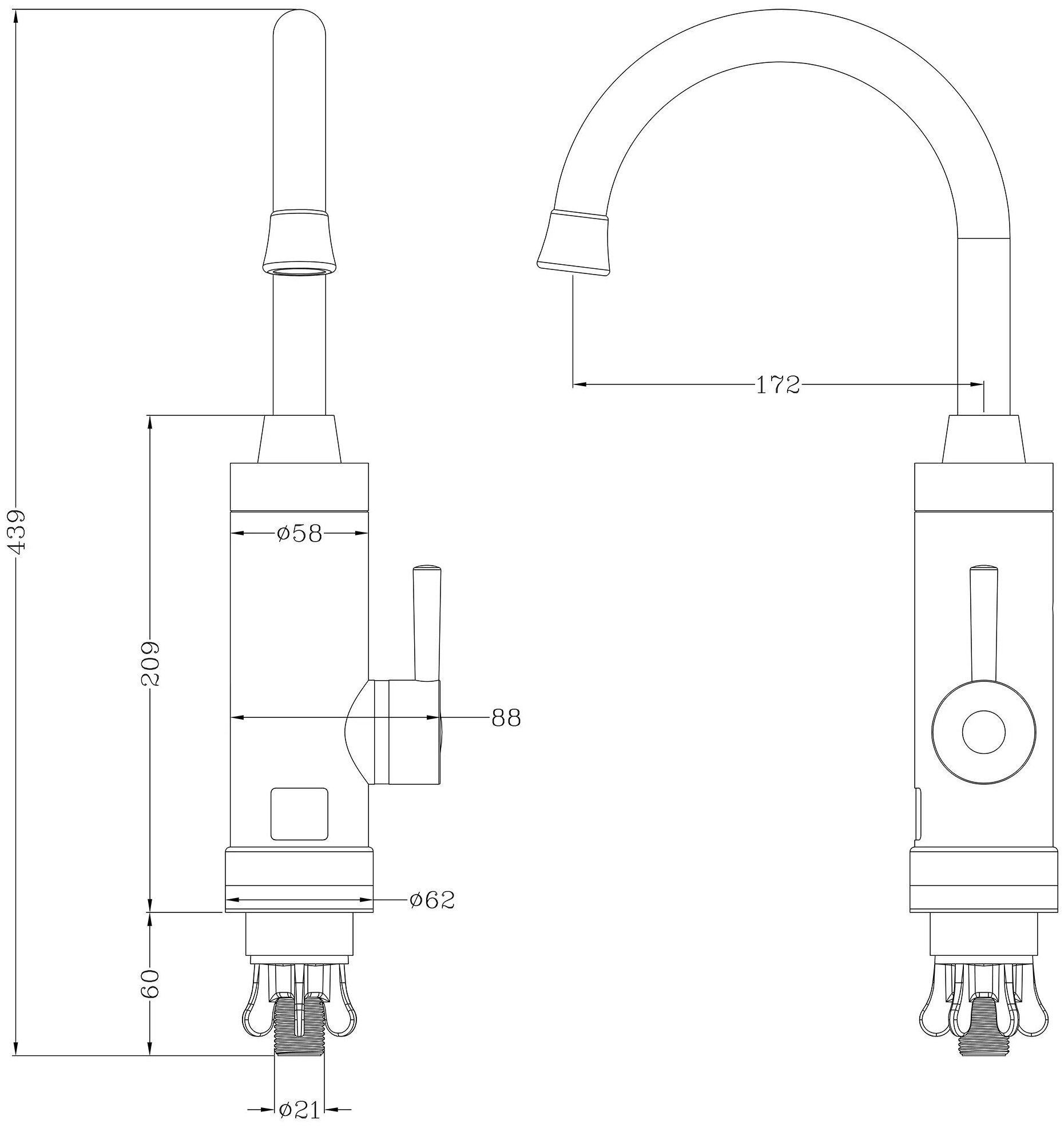| Комплектация | Корпус водонагревателяПоворотный изливГайкаУплотнительная прокладкаДержатель проводаРуководство по эксплуатации с гарантийным талоном |