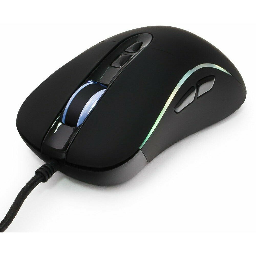 Gembird Black USB – профессиональная игровая мышь с RGB подсветкой, оснащенная сенсором Avago 3050 и переключателями Omron. Мышь выполнена в эргономичном дизайне и оснащена высокопроизводительным оптическим сенсором AVAGO со встроенной памятью и разрешением 4000 DPI. Приятное на ощупь покрытие Soft touch препятствует выскальзыванию манипулятора из руки. Форму мыши можно изменить при помощи сменных боковых панелей. Основные и дополнительные кнопки устройства (всего их 7, включая колесо-кнопку) программируются на выполнение различных игровых команд. Цвет (16 млн. цветов) и режимы (11 режимов) подсветки можно регулировать в зависимости от предпочтений. Прочная тканевая оплетка предохраняет кабель от повреждений и продлевает срок службы мыши. Подключение мыши к компьютеру осуществляется через позолоченный USB-разъем.