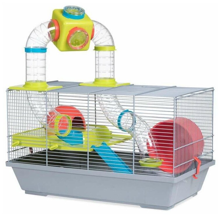 В комплекте: полка, лесенка, домик, кормушка, беговое колесо, труба со смотровой площадкой, заглушки для поддона.