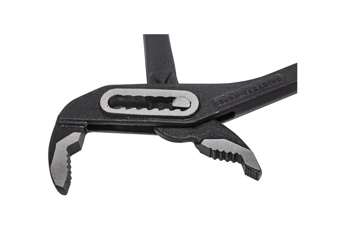 Переставные сантехнические пассатижи с мелким шагом, кнопкой фиксации и эргономической ручкой Cr-V -240мм удобны при монтаже и демонтаже трубного крепежа, а также шестигранников различных размеров. Преимущество инструмента заключено в охвате нескольких типовых размеров, что позволяет заменить пассатижами несколько ключей.