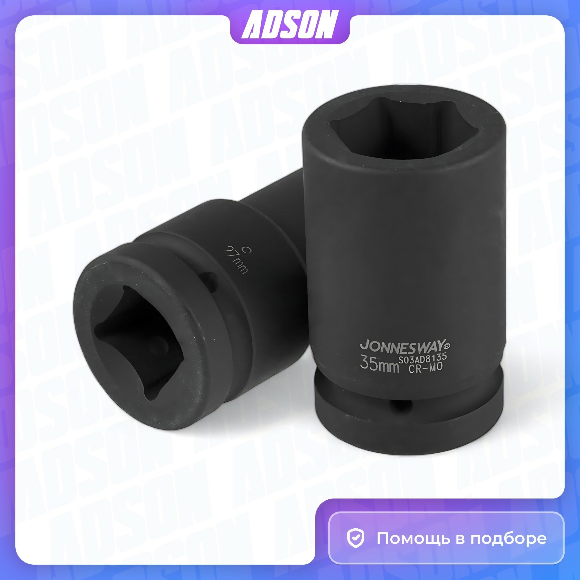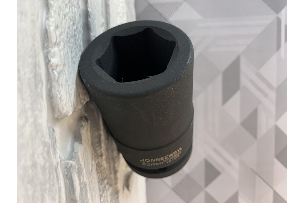 Головка торцевая ударная глубокая 1"DR, 32 мм Jonnesway - торцевые насадки для механизированного инструмента по основной области применения практически не отличаются от тех, которые используются с ручным инструментом. Так же, как и в системах сборного слесарно-монтажного инструмента, насадки для механизированного инструмента привязаны к системам по размерам приводов, разделены на предметы для обслуживания внутренних и внешних рабочих профилей. Основные отличия кроются в материалах и технологиях, применяемых при производстве ударных насадок. Главное требование - устойчивость к постоянным динамическим нагрузкам, которая достигается применением специальной стали. Её основным легирующим элементом является молибден, придающий материалу свойства, обеспечивающие компромисс между твердостью и прочностью. Защитное покрытие, применяемое при изготовлении - фосфатирование, придает инструментам матовый черный цвет. Такое покрытие необходимо для дополнительной защиты изделий от коррозии, улучшения твердости контактных поверхностей и износостойкости.