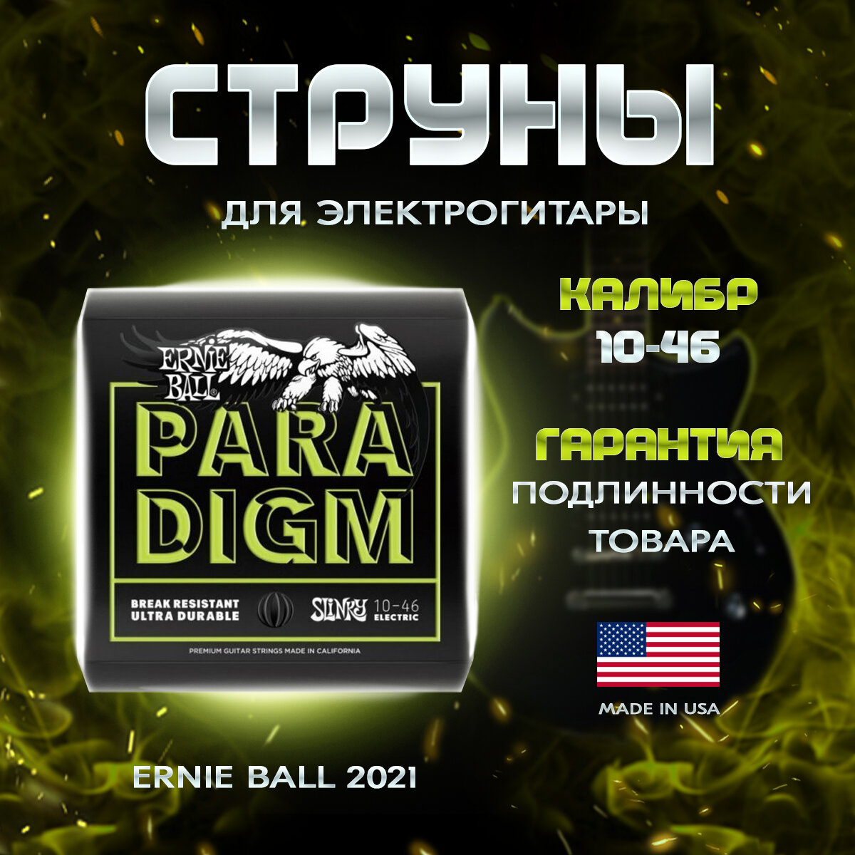 Струны для 6-струнной электрогитары. Серия Paradigm. Сердцевина струн из шестигранной стали, обмотка из никелированной стали. Нанообработка Everlast для защиты от загрязнений и коррозии. Калибр .010-.013-.017-.026w-.036w-.046w, натяжение Regular Slinky (среднее).