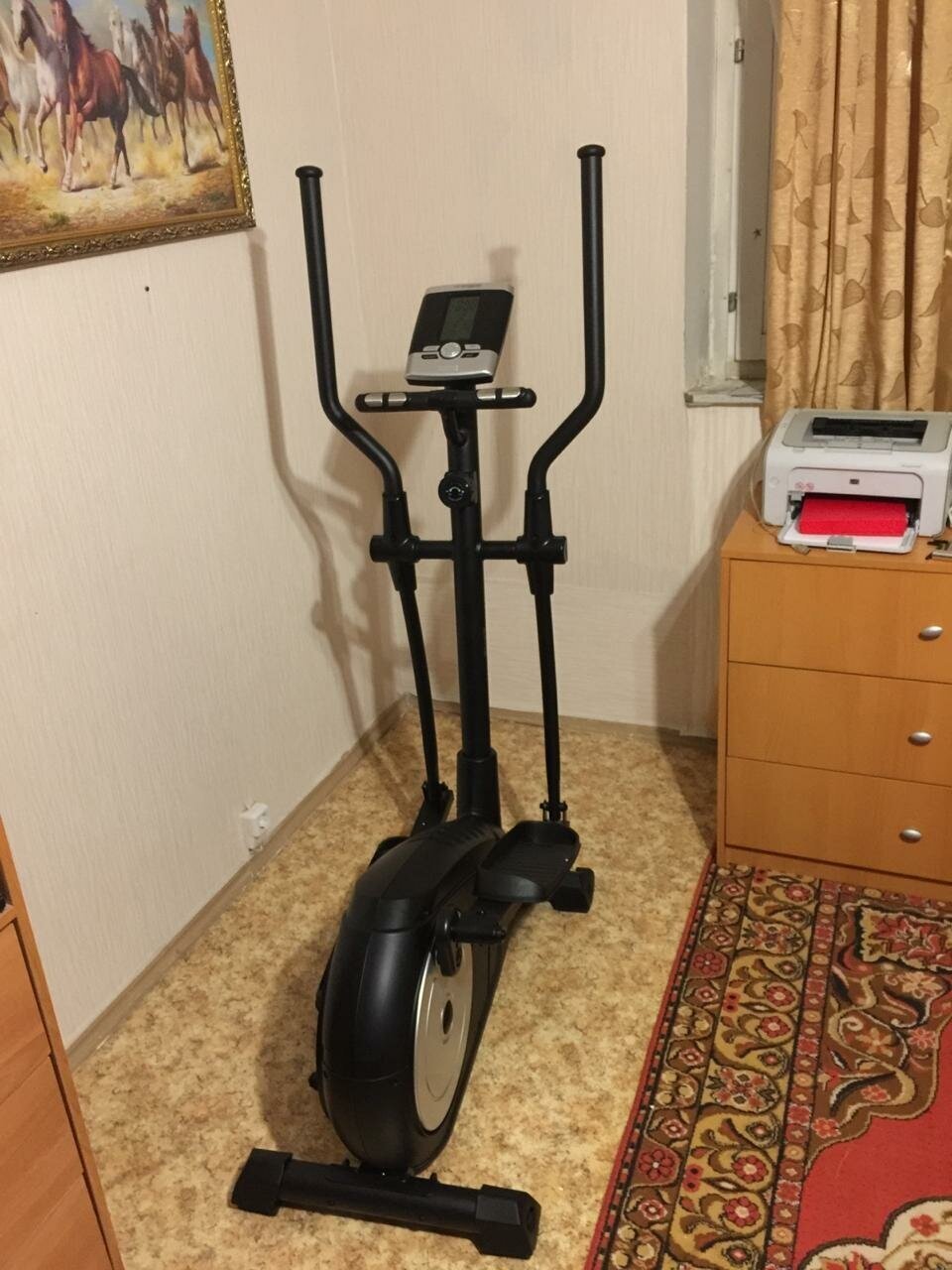 Один из самых дешевых эллипсов с длиной шага больше 40 см. Меньше брать не стоит. Тренироваться комфортно. Нагрузки идет не только на ноги, но и одновременно тренируются руки. Q-фактор (расстояние между педалями) небольшой и составляет 19 см. Обладает удобной консолью, регулировка осуществляется в основном колесиком. На других обычно все делается через кнопки. Собран качественно.