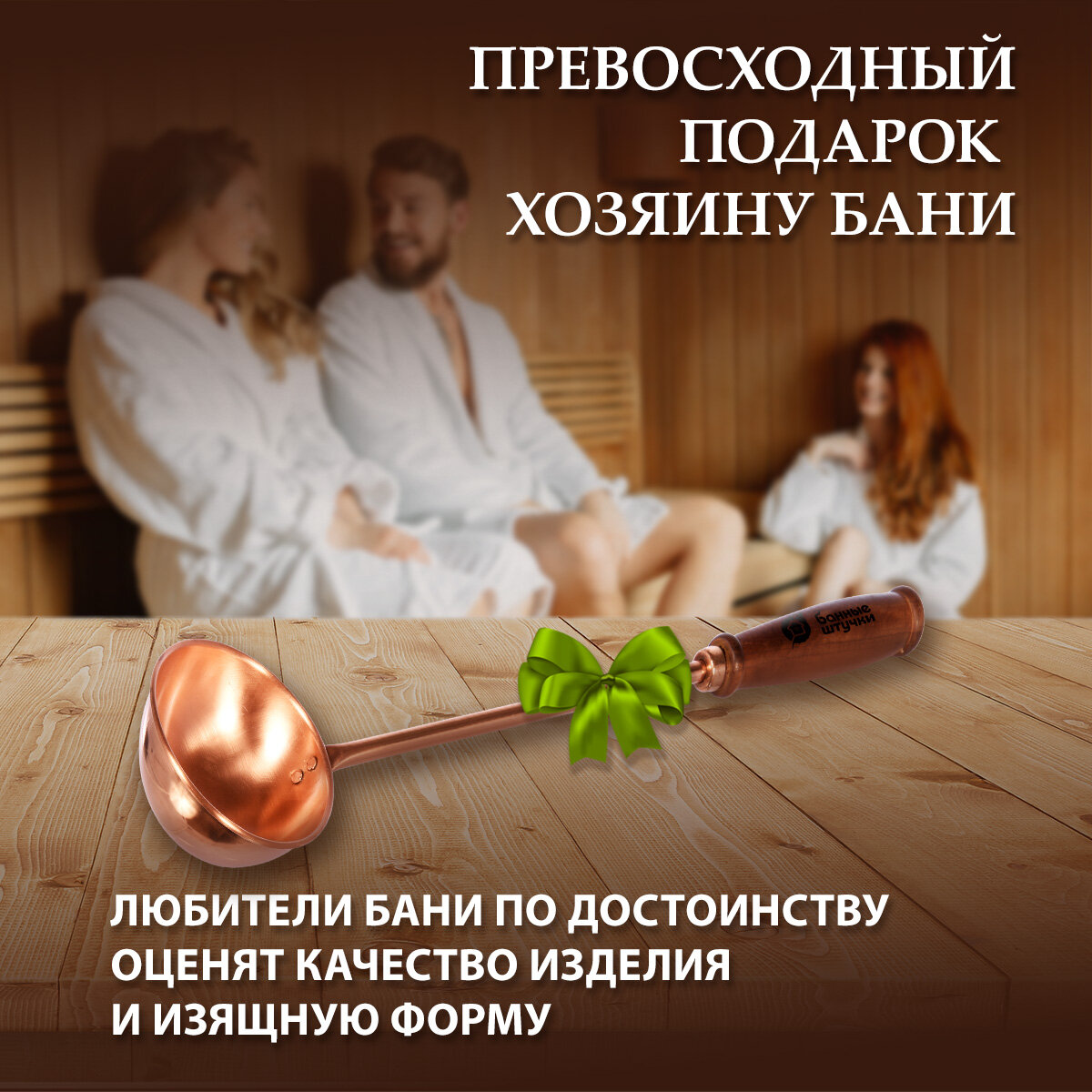 Данное изделие используется для обработки камней в парной различными травяными составами. Благодаря длинной ручке вы можете не бояться обжечься при поливании раскаленных камней. Ручка имеет продуманную форму и плотно ложится в руку, что также влияет на безопасность в парной. Ковш - не просто аксессуар, а постоянно используемый в бане инструмент, который прослужит Вам долгие годы.