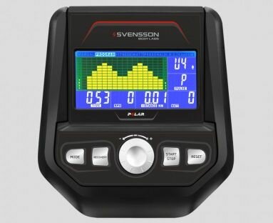 Тренировочный компьютер представлен многофункциональным цветным LCD-дисплеем диагональю 14 см с профилем тренировки. В программный пакет входят 12 предустановленных программ. Они ориентированы на развитие таких качеств как выносливость, силу, помогают сбросить лишний вес и просто держать организм в тонусе. Помимо предустановленных программ, можно воспользоваться самостоятельно регулируемым ручным режимом. Для тренировок с контролем пульса существуют 4 пульсозависимые программы с предустановленными значениями 55%, 75%, 90% и 100% от целевого максимального пульса. Для точного определения пульса и просто комфортной тренировки в компьютер встроен беспроводной приемник (нагрудный ремень-передатчик приобретается отдельно). Эргонометрическая функция (ватты) позволяет зафиксировать необходимый уровень нагрузки - он останется постоянным вне зависимости от скорости вращения педалей. По завершении тренировки функция Recovery оценит способность сердечно-сосудистой системы к восстановлению.