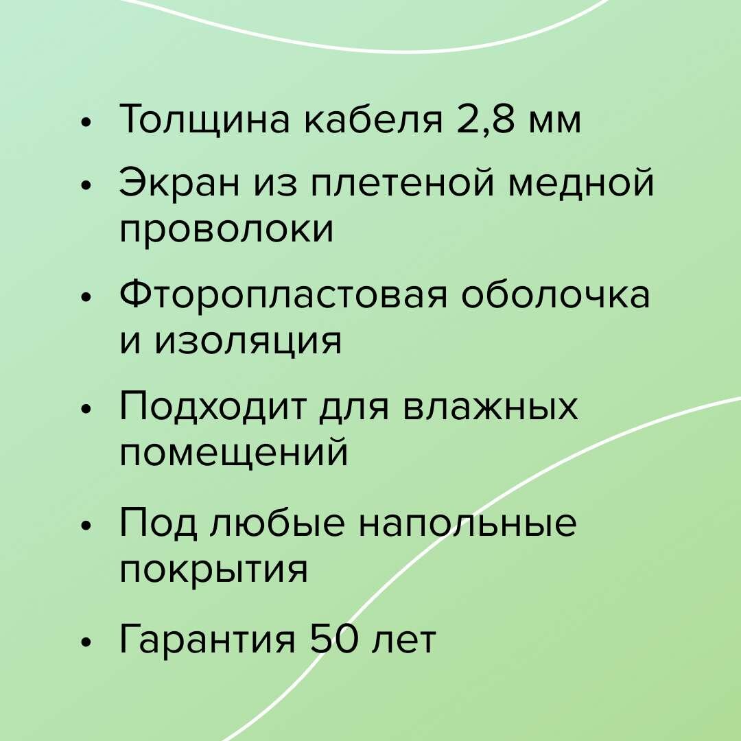 - Очень тонкий и крепкий кабель теплого пола, монтаж простой, все понятно даже обывателю, большая гарантия хороший производитель