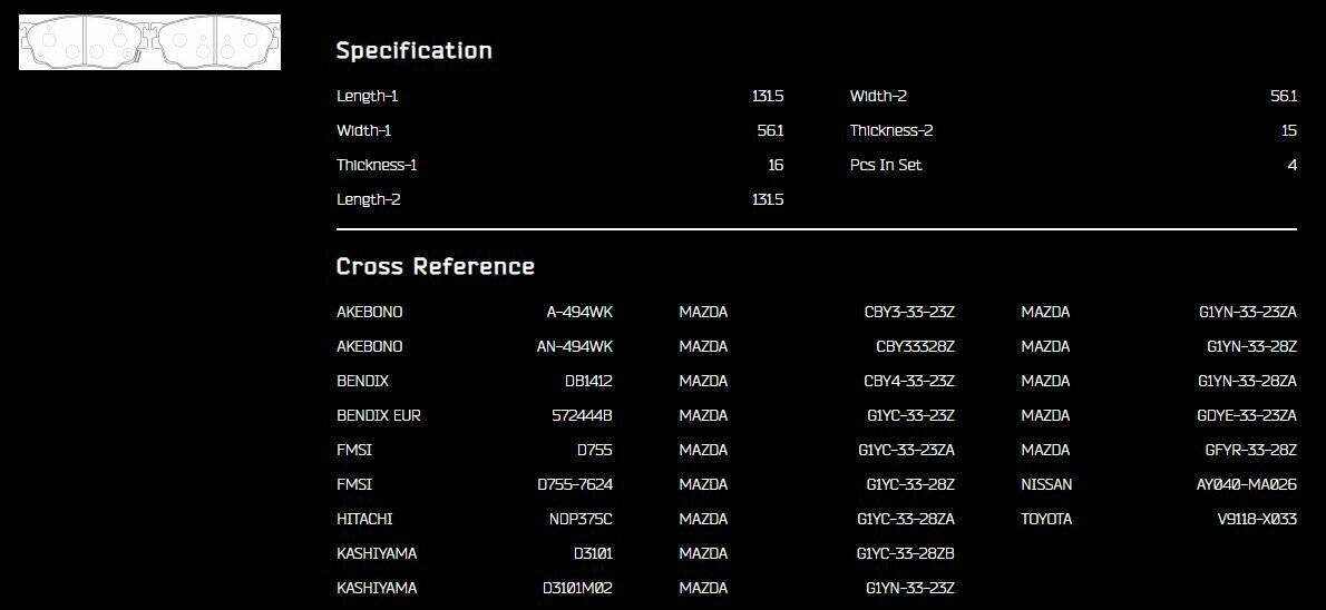 | Тип | тормозные колодки |