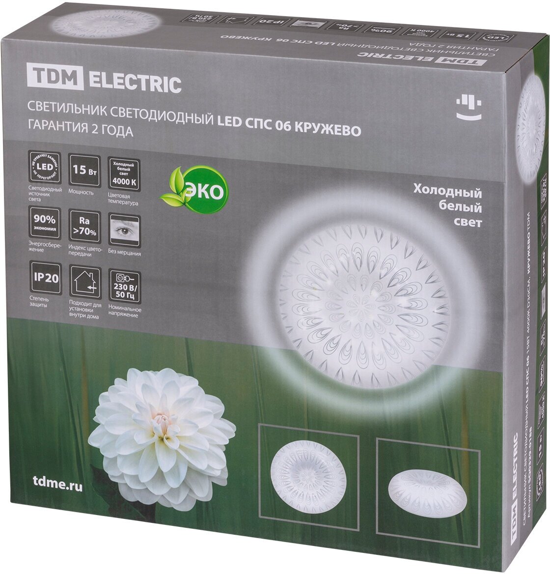 - Матовый рассеиватель обеспечивает равномерное распределение света и создает комфортное мягкое освещение