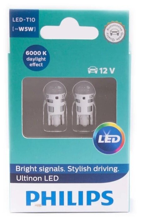 - LED лампа Philips Ultinon T10(W5W) 12V 6000K 11961ULWX2