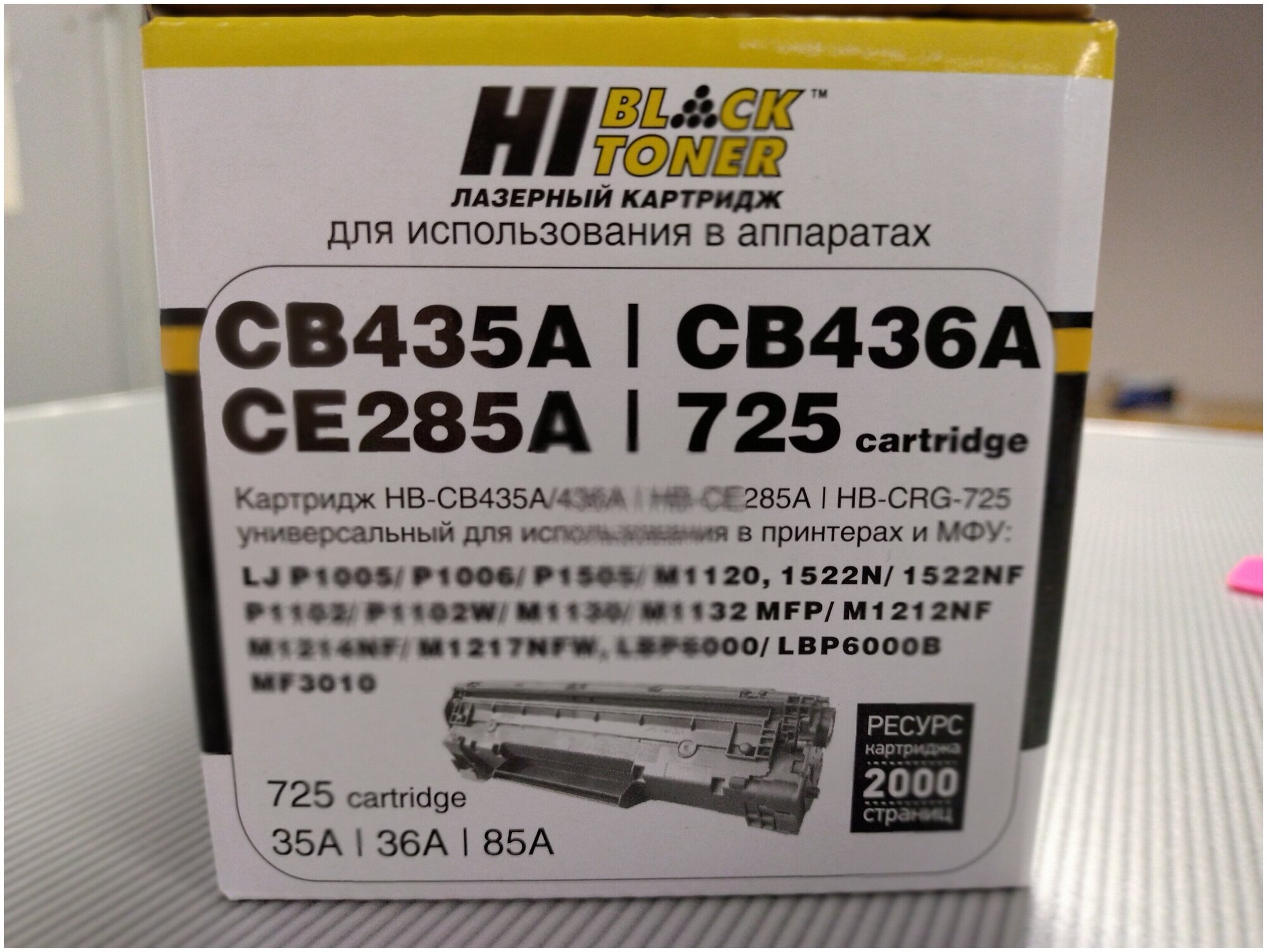 | Наименование модели | Cartridge725; CE285A; CB436A; CB435A; 36A; 35A; 85A |