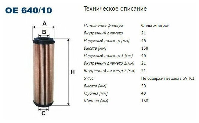 Фильтр масляный FILTRON OE 640/10 для MB W204/W212 1.8 07> изготовлен из материалов высокого качество, которое контролируется лабораторными исследованиями. Фильтрующие среды, а также клапаны, пружины, корпуса или другие элементы фильтров соответствуют требованиям, предъявляемым им даже в самых тяжелых условиях эксплуатации.Проверенная герметичностьВ процессе производства специалисты проводят многочисленные испытания на герметичность масляных фильтров, обладающих корпусом. Испытания проводятся с использованием современных и автоматизированных измерительных машин. Покупая масляный фильтр FILTRON, вы можете быть уверены в том, что его конструкция исключает риск утечки масла.Прецизионные клапаны, учитывающие все требованияB масляных фильтрах корпусного типа с клапанами важно, чтобы конструкция и свойства клапанов соответствовали требованиям изготовителя двигателя или транспортного средства. Клапаны в масляных фильтрах FILTRON разработаны с учетом индивидуальных требований так, чтобы фильтр всегда надёжно выполнял свою задачу в масляной системе.Использование современных синтетических материаловЗамена металлических элементов масляного фильтра элементами, изготовленными из синтетических материалов – это широко применяемая тенденция в фильтрационной отрасли, вызванная желанием облегчить утилизацию фильтра и уменьшить его массу. Стоит отметить, что используемые синтетические материалы тщательно тестируются в лаборатории, поэтому их качество всегда соответствует предъявляемым к ним требованиям.