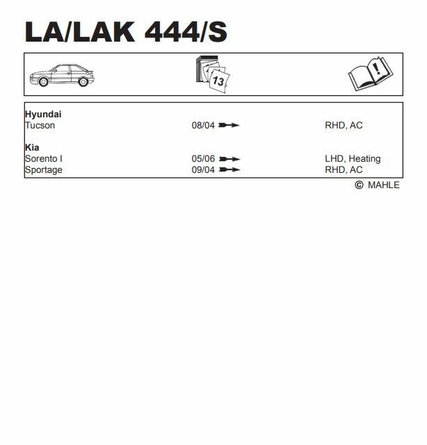 | Наименование модели | фильтр воздушный салона LA444/S для KIA SPORTAGE/SORENTO/HYUNDAI TUCSON 06- |
