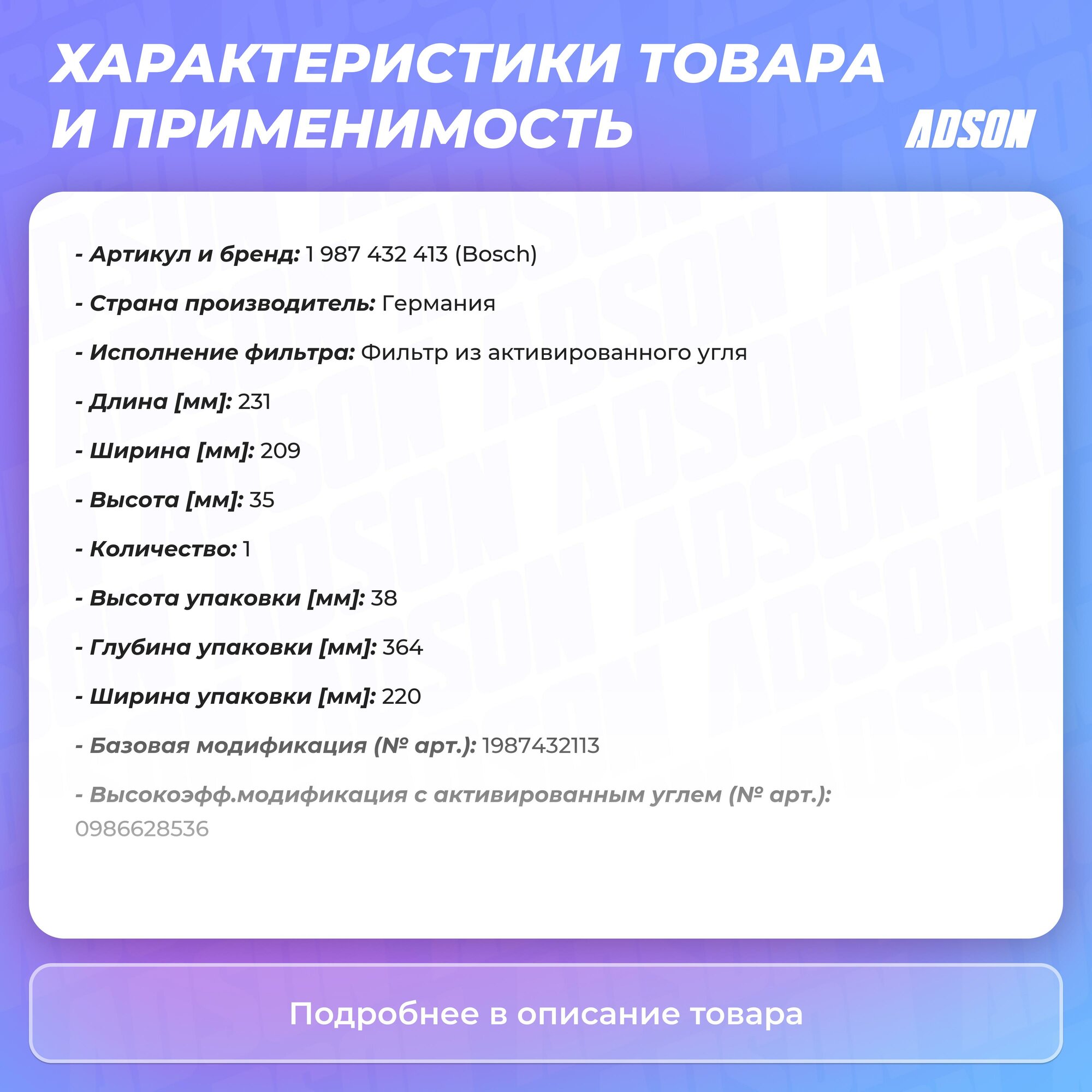 Тип товара: Салонный фильтр
