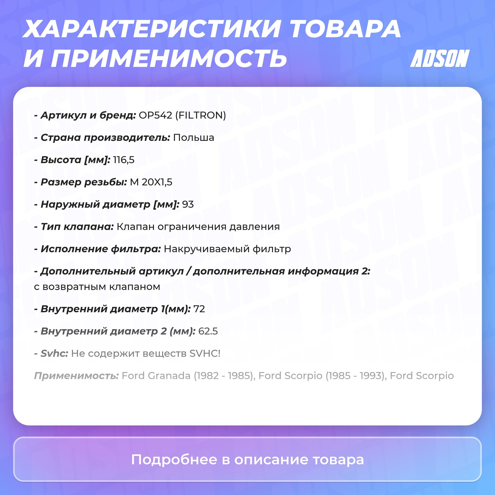 Сервис сравнения цен СкидкаГИД предлагает сравнить цены на товар «Масляный фильтр Filtron OP542»