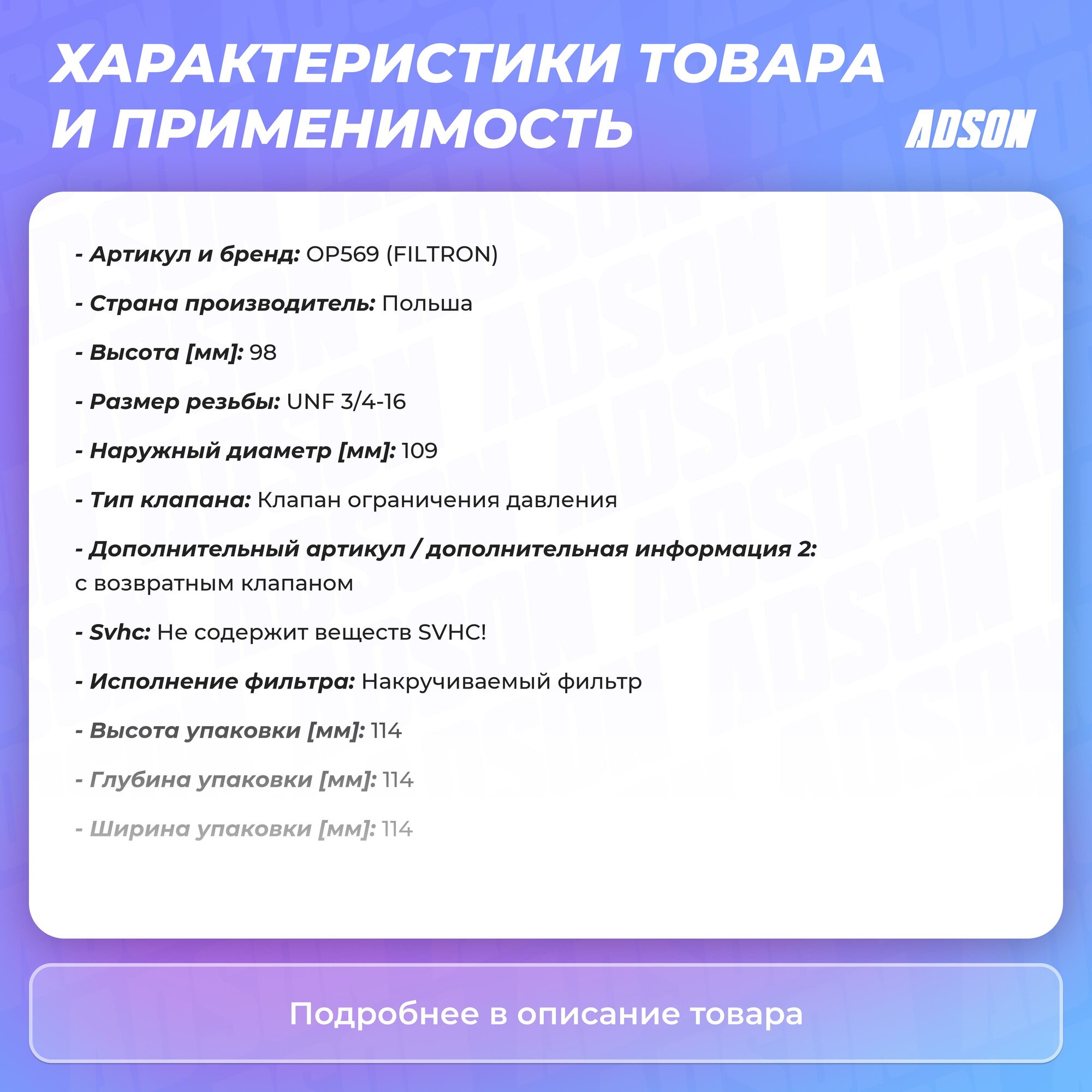 Тип товара: Масляный фильтр