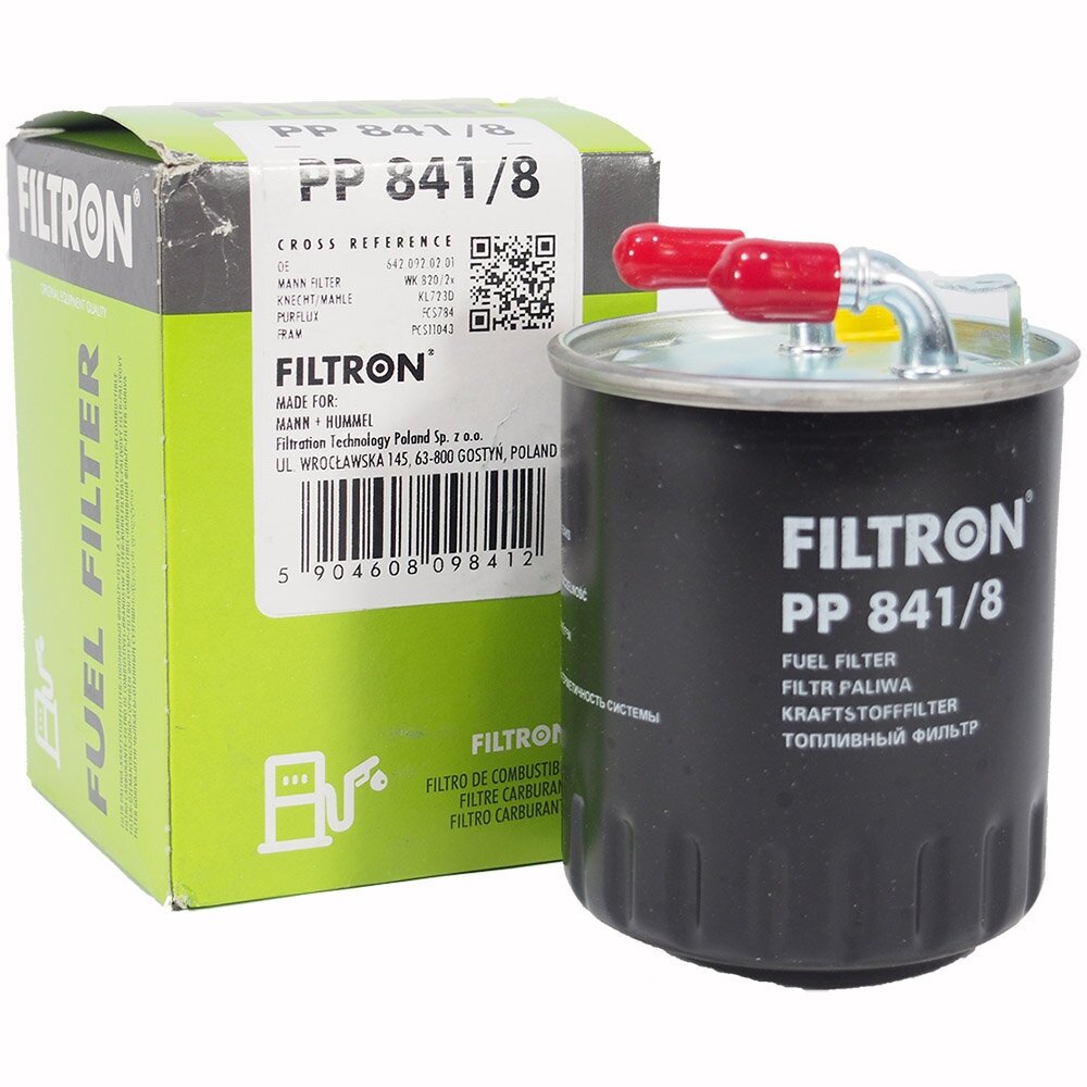 Фильтр топливный FILTRON PP 841/8 для MB W204/W212 2.2CDi/Sprinter II 2.2CDi/3.0CDi 07> обеспечивает тщательная и эффективную фильтрацию, задерживая мельчайшие примеси, которые в несколько десятков раз меньше песчинок. Высокое качество фильтров FILTRON обусловлено опытом и современными стандартами производства.Защита современных систем впрыскаИспользуемые в дизельных двигателях системы впрыска требуют очень эффективной фильтрации и отделения воды. FILTRON предлагает широкий ассортимент топливных фильтров для автомобилей с современными системами впрыска. Эти фильтры соответствуют самым высоким стандартам, благодаря высокотехнологичным решениям, таким как, например, многоступенчатое отделение воды.Фильтрующие материалы, адаптированные к требованиям двигателяВ топливных фильтрах FILTRON применяются высокоэффективные фильтрующие материалы, учитывающие требования изготовителя двигателя или транспортного средства. Эффективность и свойства используемых фильтрующих материалов испытываются в современной лаборатории, в которой ежегодно проводим около 4000 тестов.