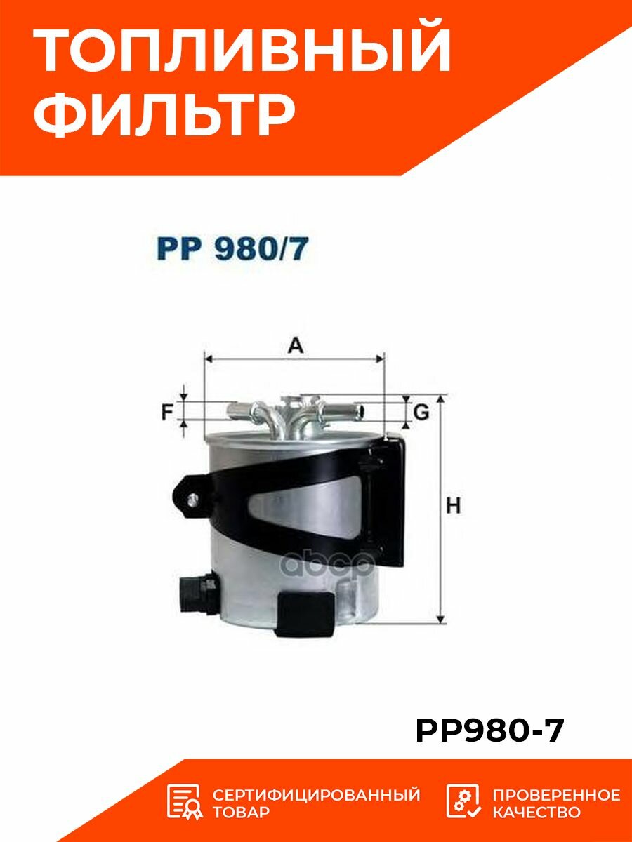 Фильтр топливный FILTRON PP 980/7 для Renault Megane II 1.5dCi/2.0dCi 05> обеспечивает тщательная и эффективную фильтрацию, задерживая мельчайшие примеси, которые в несколько десятков раз меньше песчинок. Высокое качество фильтров FILTRON обусловлено опытом и современными стандартами производства.Защита современных систем впрыскаИспользуемые в дизельных двигателях системы впрыска требуют очень эффективной фильтрации и отделения воды. FILTRON предлагает широкий ассортимент топливных фильтров для автомобилей с современными системами впрыска. Эти фильтры соответствуют самым высоким стандартам, благодаря высокотехнологичным решениям, таким как, например, многоступенчатое отделение воды.Фильтрующие материалы, адаптированные к требованиям двигателяВ топливных фильтрах FILTRON применяются высокоэффективные фильтрующие материалы, учитывающие требования изготовителя двигателя или транспортного средства. Эффективность и свойства используемых фильтрующих материалов испытываются в современной лаборатории, в которой ежегодно проводим около 4000 тестов.