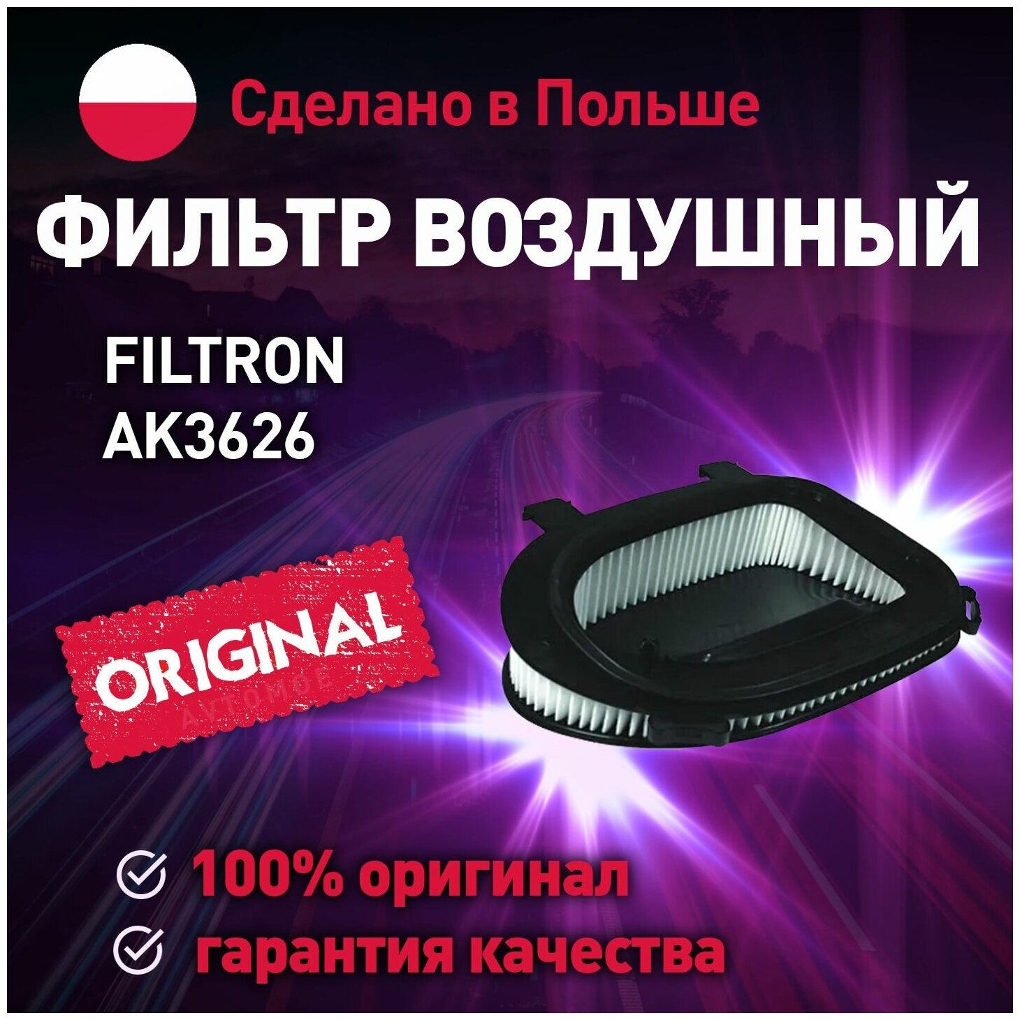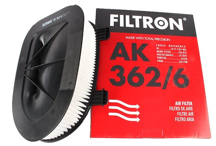 Фильтр воздушный FILTRON AK 362/6 для BMW F25 X3 2.0/3.0D/E70 X5 3.0D10> изготовлен с помощью современных фильтрующих материалов, созданных, в частности, на основе целлюлозных или синтетических волокон. Эти материалы обеспечивают эффективность фильтрации на уровне 99,9% для частиц размером всего в несколько микрон.Фильтрующая среда, стойкая к распространению огняВсе воздушные фильтры марки FILTRON имеют фильтрующие среды, которые, в соответствии с классом горючести F1 или S1, не поддерживают огонь (способствуют самоугасанию пламени) и могут защитить пассажиров от пожара транспортного средства в случае всасывания окурка сигареты в систему подачи воздуха.Прочные прокладки воздушных фильтров, обеспечивающие герметичностьДля производства прокладок воздушных фильтров используется уникальная смесь полиуретана, отличающаяся упругостью и устойчивостью к сжатию в экстремально высоких температурах. Благодаря исключительным свойствам прокладок, воздушные фильтры FILTRON сохраняют герметичность в корпусе даже в очень сложных условиях эксплуатации.Складки стабилизированы с помощью перфорированного покрытияСкладки (гофры) воздушных фильтров FILTRON стабилизируются с помощью специального перфорированного покрытия, предотвращающего слипание соседних складок. Благодаря равномерному распределению складок, воздух фильтруется всей поверхностью фильтрующего материала, способствуя полному использованию мощности двигателя.Все реже используются, так как в современных моделях легковых автомобилей пространство, выделенное для системы впуска воздуха, значительно ограничено в связи с установкой ряда дополнительных систем (например, кондиционирования воздуха). Круглые фильтры сложной конструкции популярны в автомобилях премиум-класса с большим объемом двигателя.