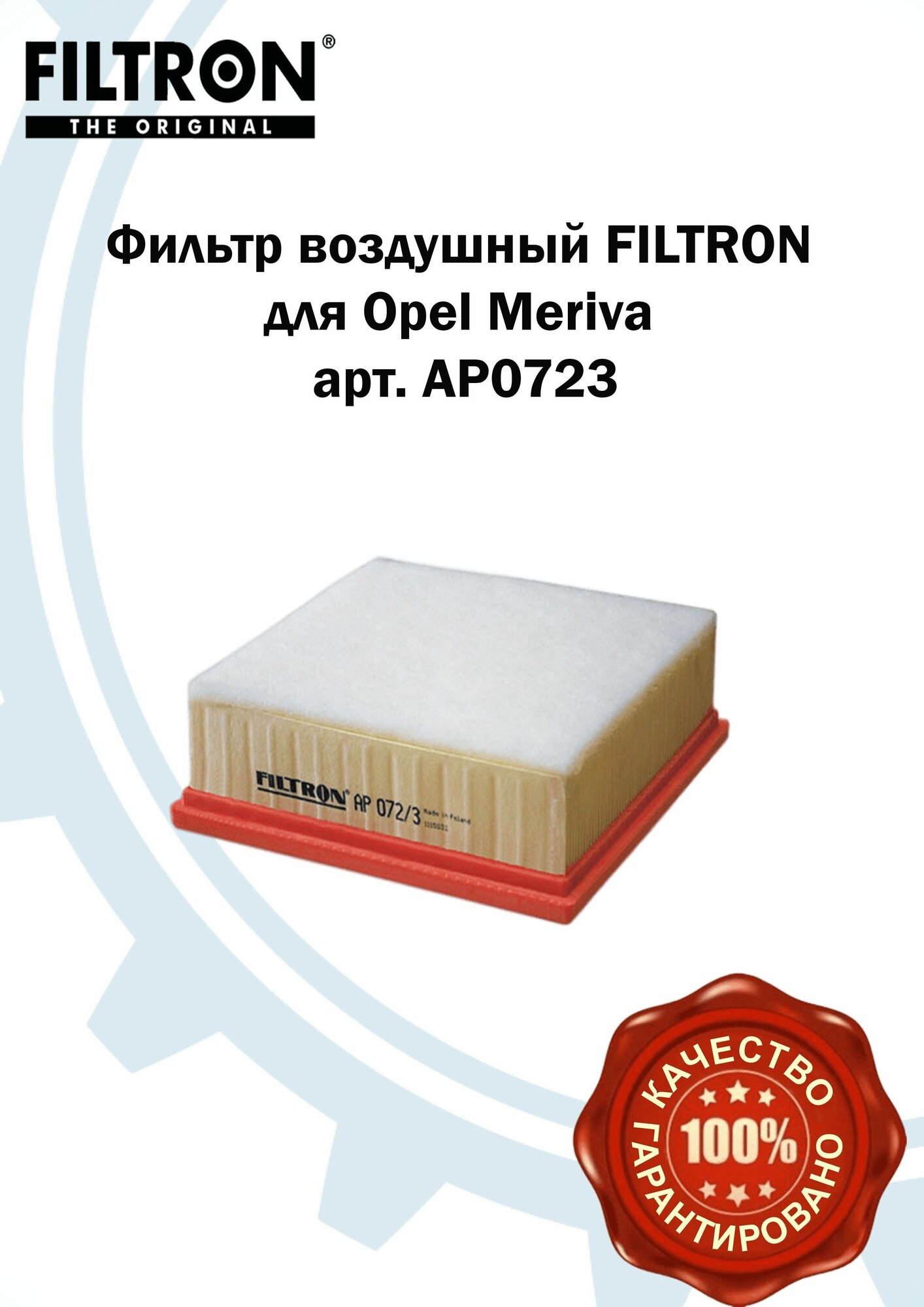 Обязательна проверка по VIN-коду. Фильтр воздушный фирмы FILTRON с артикулом AP0723Если вы не уверены в выборе запчасти, напишите нам VIN номер вашего авто и наши специалисты подберут для вас запчасти.