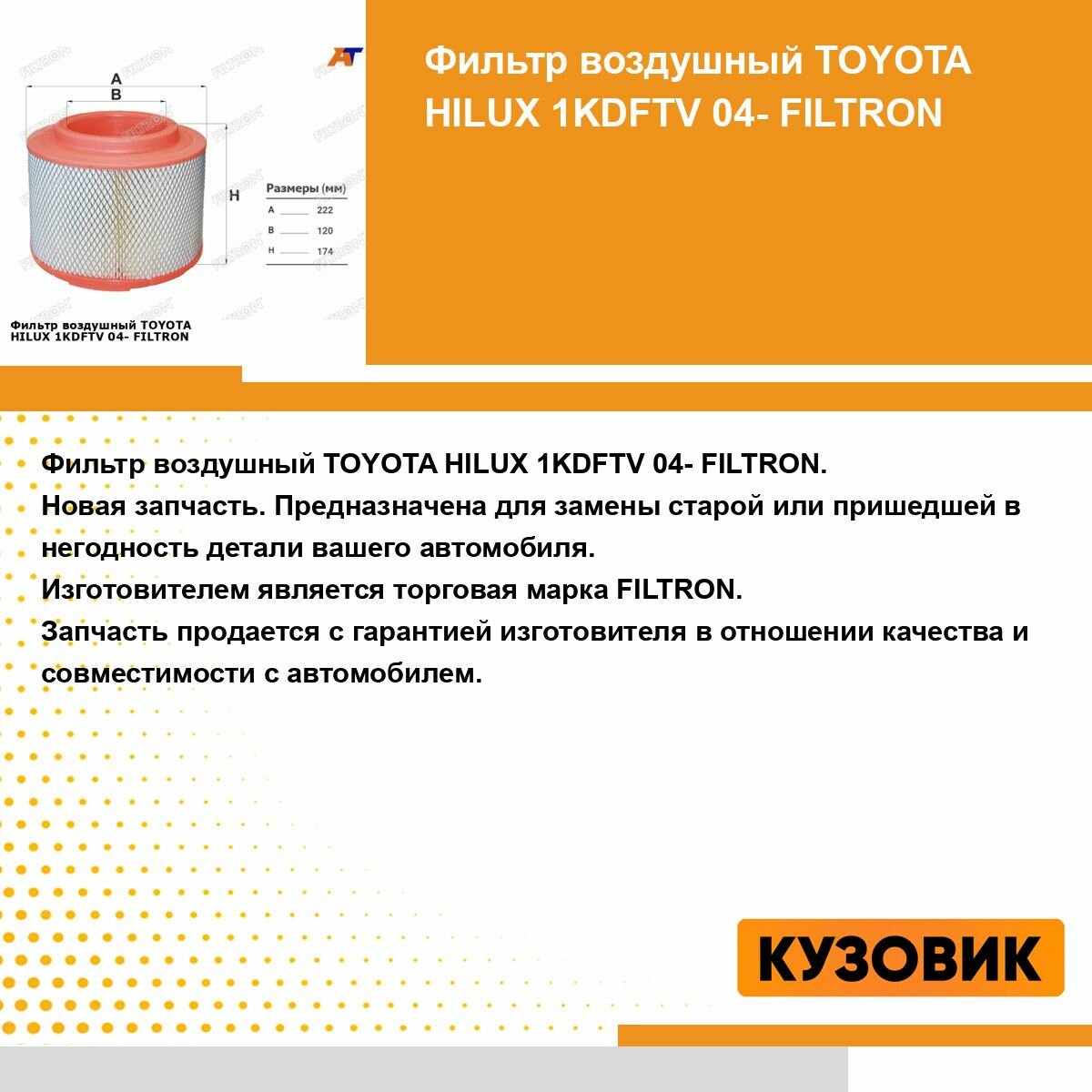 | Производитель | Filtron |