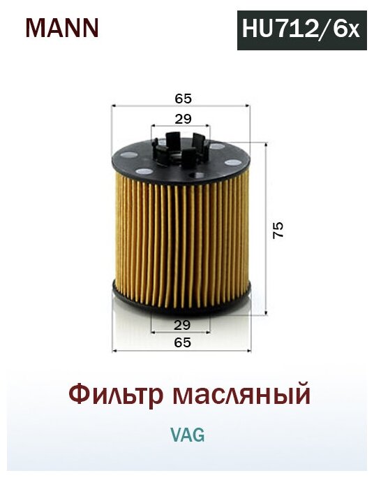 | Наименование модели | фильтрующий элемент масляного фильтра MANN-FILTER HU712/6X |