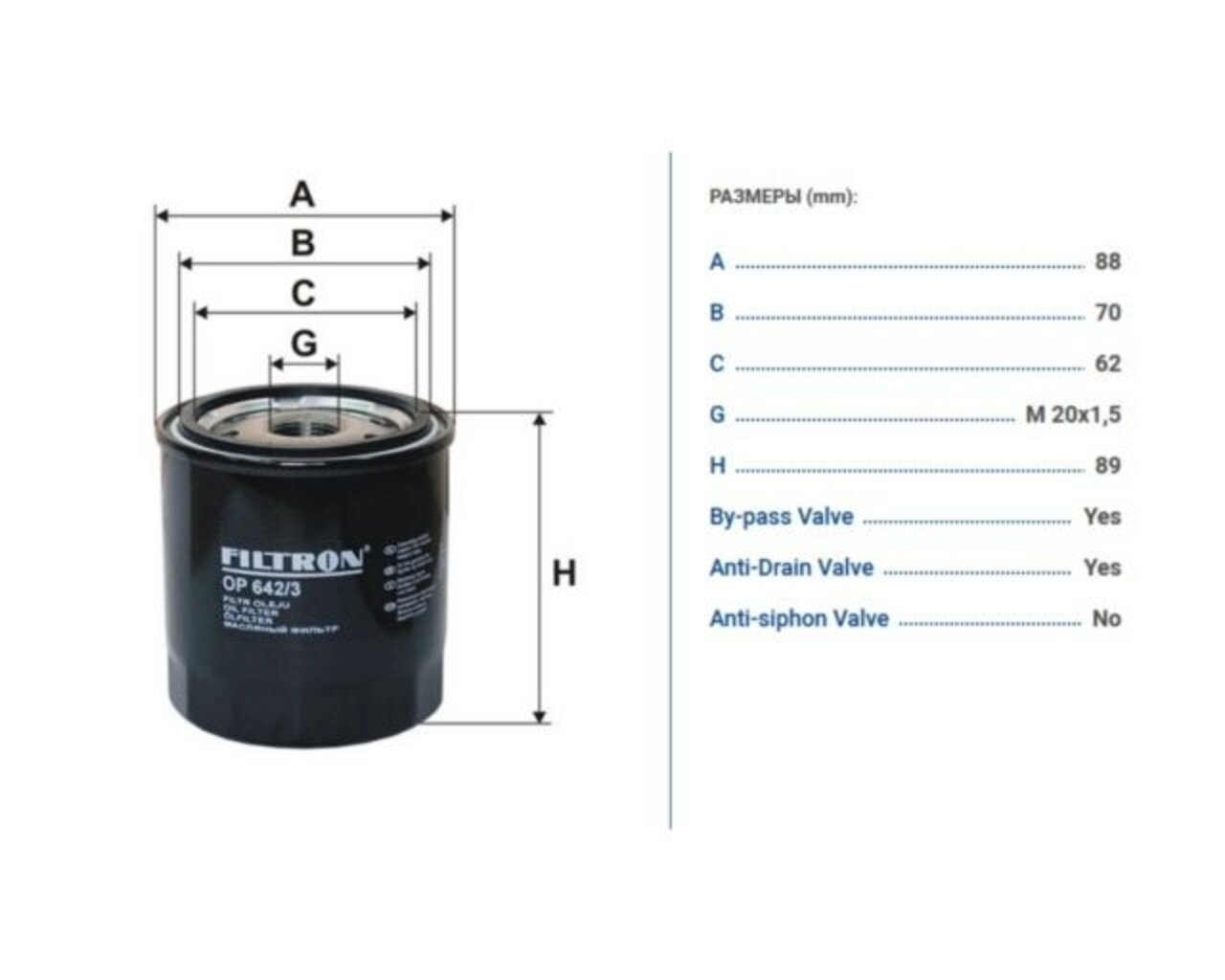 Фильтр масляный FILTRON OP 642/3 для Nissan Pathfinder 3.0DCI 10> изготовлен из материалов высокого качество, которое контролируется лабораторными исследованиями. Фильтрующие среды, а также клапаны, пружины, корпуса или другие элементы фильтров соответствуют требованиям, предъявляемым им даже в самых тяжелых условиях эксплуатации.Проверенная герметичностьВ процессе производства специалисты проводят многочисленные испытания на герметичность масляных фильтров, обладающих корпусом. Испытания проводятся с использованием современных и автоматизированных измерительных машин. Покупая масляный фильтр FILTRON, вы можете быть уверены в том, что его конструкция исключает риск утечки масла.Прецизионные клапаны, учитывающие все требованияB масляных фильтрах корпусного типа с клапанами важно, чтобы конструкция и свойства клапанов соответствовали требованиям изготовителя двигателя или транспортного средства. Клапаны в масляных фильтрах FILTRON разработаны с учетом индивидуальных требований так, чтобы фильтр всегда надёжно выполнял свою задачу в масляной системе.Использование современных синтетических материаловЗамена металлических элементов масляного фильтра элементами, изготовленными из синтетических материалов – это широко применяемая тенденция в фильтрационной отрасли, вызванная желанием облегчить утилизацию фильтра и уменьшить его массу. Стоит отметить, что используемые синтетические материалы тщательно тестируются в лаборатории, поэтому их качество всегда соответствует предъявляемым к ним требованиям.