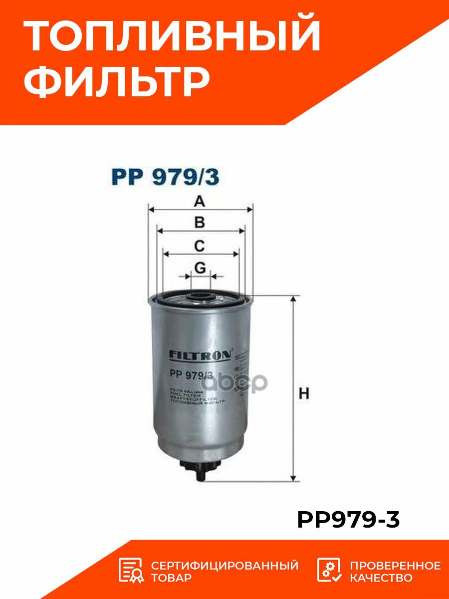 Фильтр топливный FILTRON PP 979/3 для Hyundai Accent/Matrix 1.5CRDi 01>/H-1 2.5CRDi 03> обеспечивает тщательная и эффективную фильтрацию, задерживая мельчайшие примеси, которые в несколько десятков раз меньше песчинок. Высокое качество фильтров FILTRON обусловлено опытом и современными стандартами производства.Защита современных систем впрыскаИспользуемые в дизельных двигателях системы впрыска требуют очень эффективной фильтрации и отделения воды. FILTRON предлагает широкий ассортимент топливных фильтров для автомобилей с современными системами впрыска. Эти фильтры соответствуют самым высоким стандартам, благодаря высокотехнологичным решениям, таким как, например, многоступенчатое отделение воды.Фильтрующие материалы, адаптированные к требованиям двигателяВ топливных фильтрах FILTRON применяются высокоэффективные фильтрующие материалы, учитывающие требования изготовителя двигателя или транспортного средства. Эффективность и свойства используемых фильтрующих материалов испытываются в современной лаборатории, в которой ежегодно проводим около 4000 тестов.