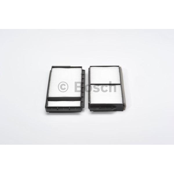 Салонный фильтр играет роль защитного барьера на пути попадающего в салон воздуха. Салонный фильтр очищает воздух от вредных примесей и задерживает механические составляющие – частицы пыли, пыльцу, и другой мусор. Кроме того, фильтр салона защищает от загрязнения данными посторонними частицами испаритель кондиционера.Угольные салонные фильтры изготовлены из синтетических волокон, пропитанных активированным углем. Они способны обеспечить оптимальный баланс между проходимостью воздуха и эффективной фильтрацией. Угольные фильтры способны уловить гораздо больше примесей из потока воздуха в сравнении с бумажными, не допускают размножения бактерий на фильтрующем элементе, исключают присутствие неприятных запахов.Компания Bosch рекомендует салонные фильтры к замене каждые 15000 км пробега, или же ежегодно. Салонные фильтры Bosch выпускаются для большей части современных автомобилей, просты в установке и надёжны в использовании.Характеристики салонных фильтров Bosch:Эффективно очищают воздух от пыльцы, грязи и вредных веществ, сохраняют здоровье пассажиров и водителя.Обеспечивают безупречное качество воздуха, что позитивно сказывается на концентрации внимания.Свежесть воздуха, очищенного салонным фильтром Bosch, существенно увеличивает уровень комфорта в автомобиле.