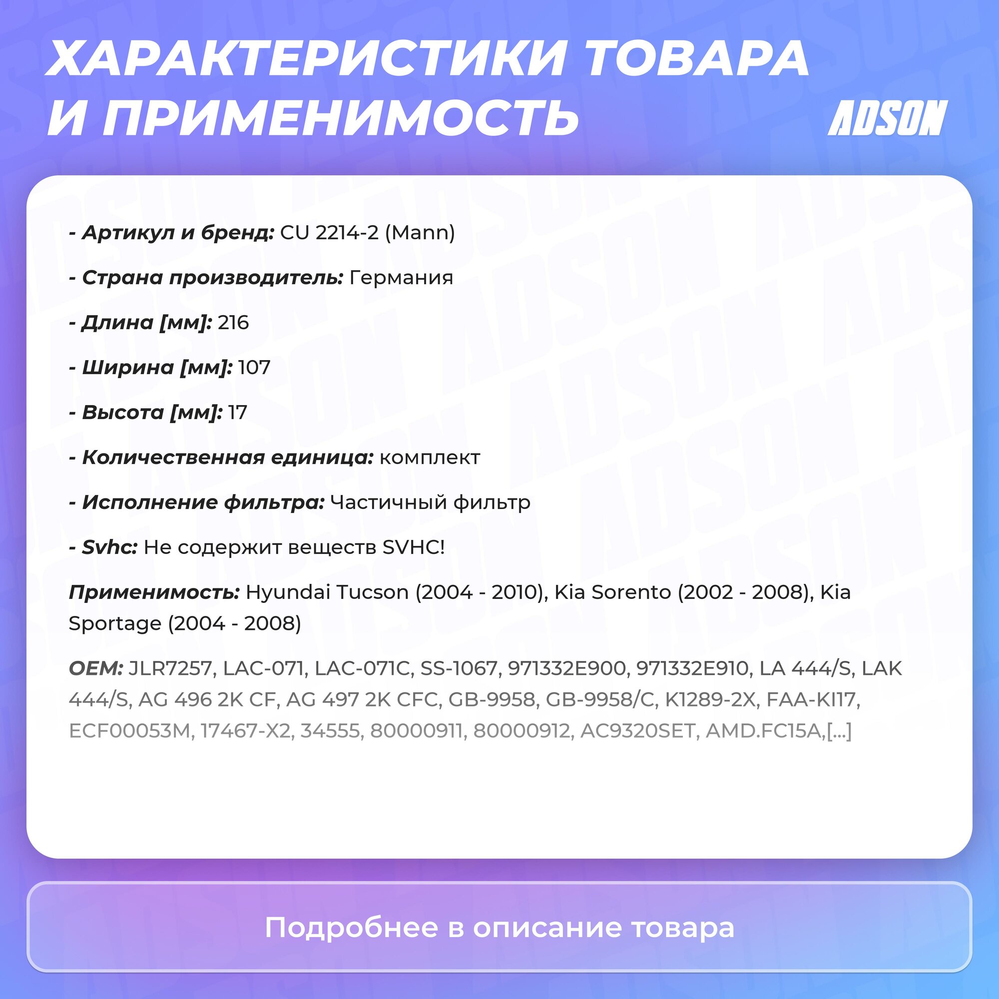 Сервис сравнения цен СкидкаГИД предлагает сравнить цены на товар «Салонный фильтр Mann-Filter CU2214-2»