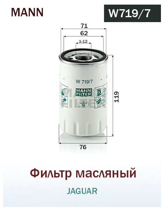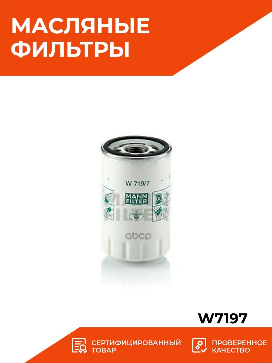 | Наименование модели | фильтр масляный двигателя W719/7 |